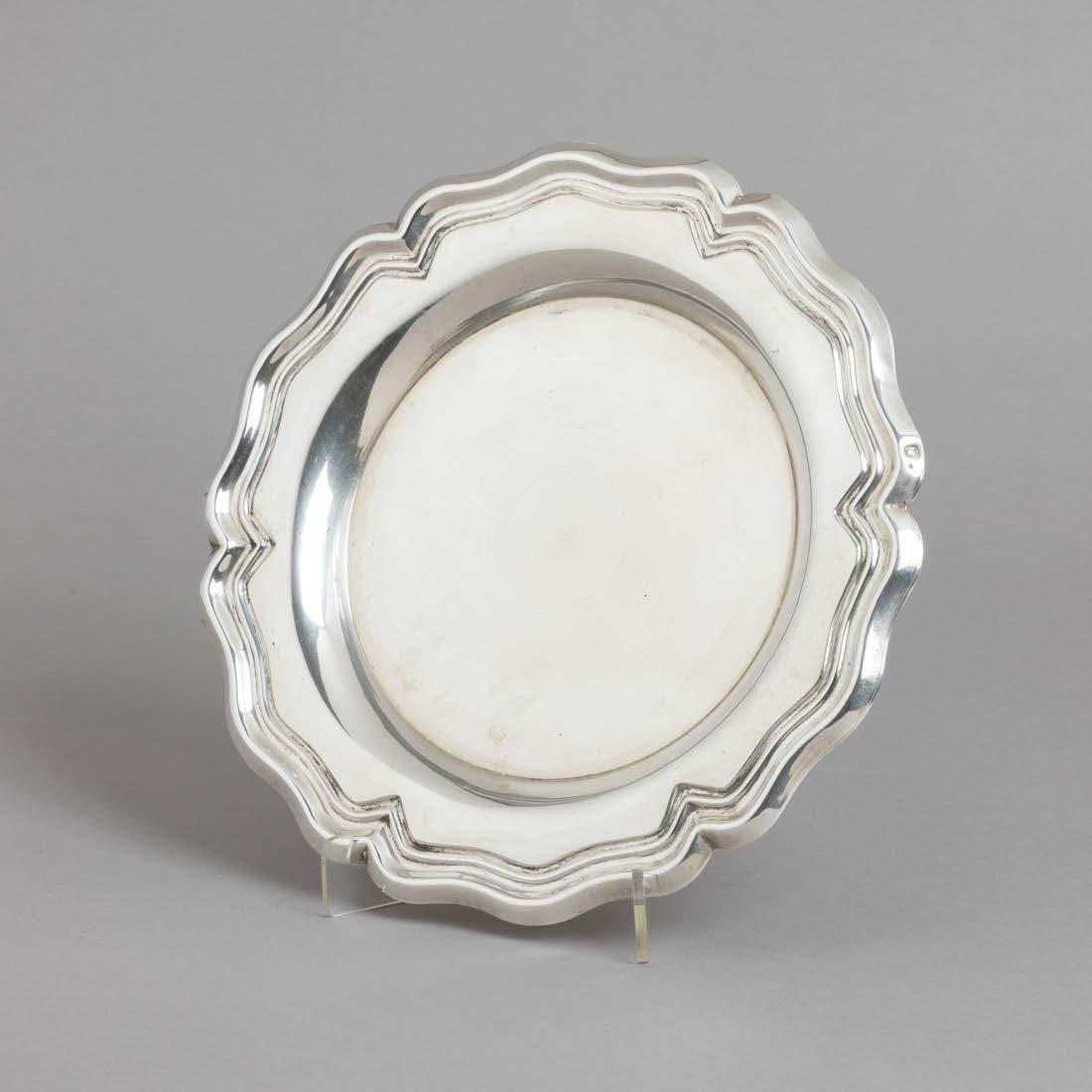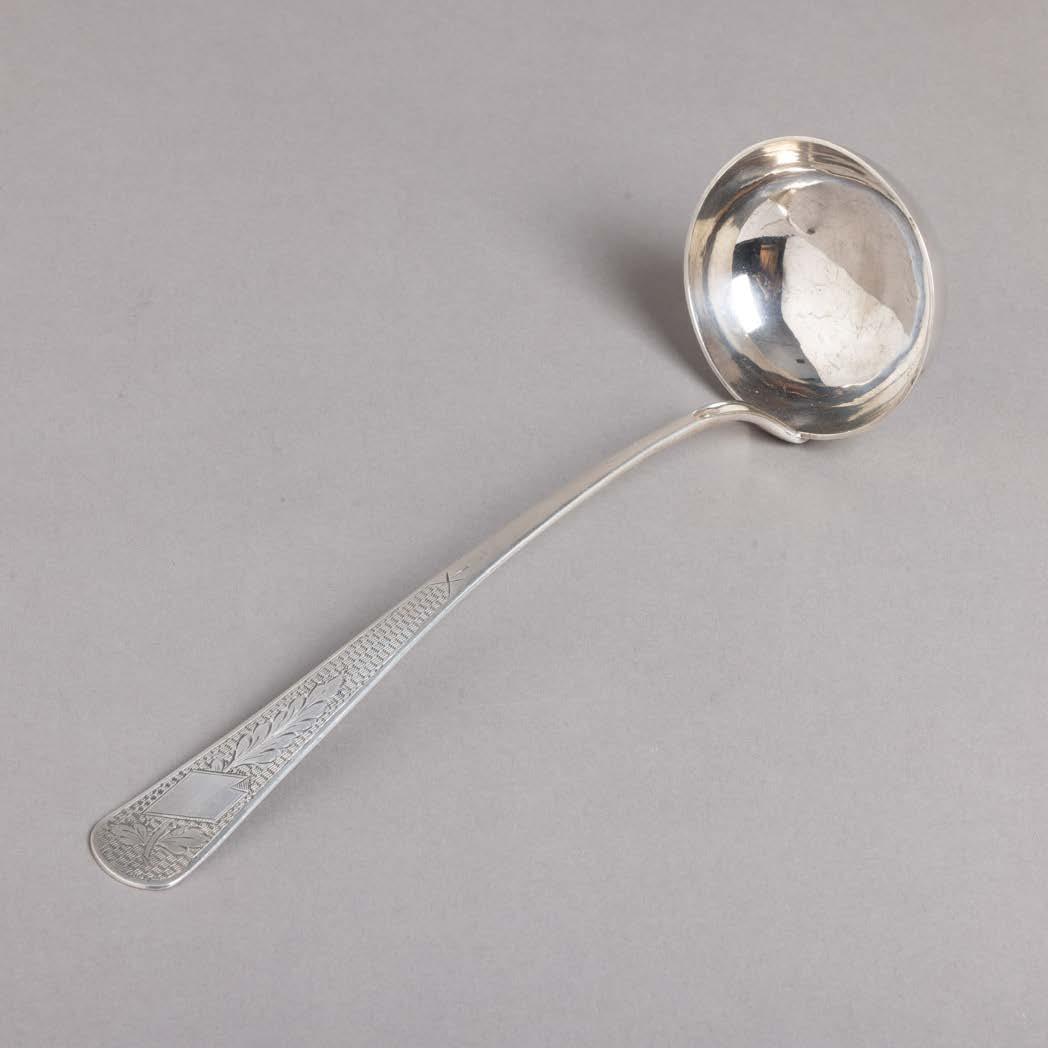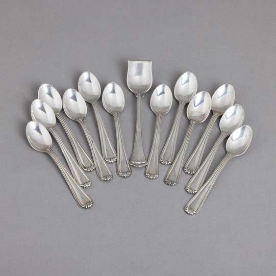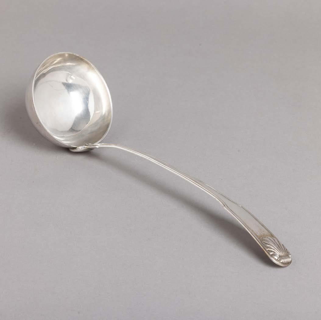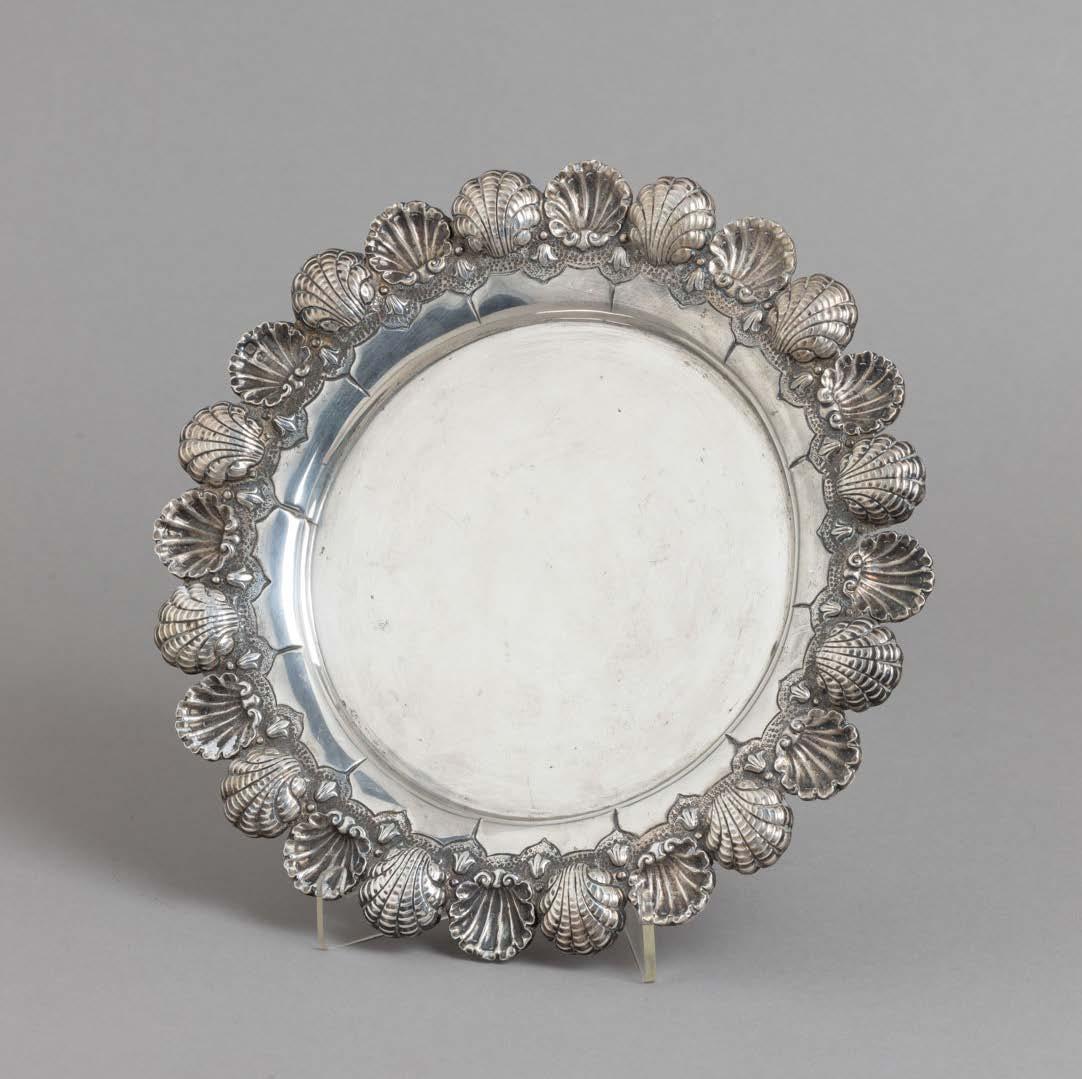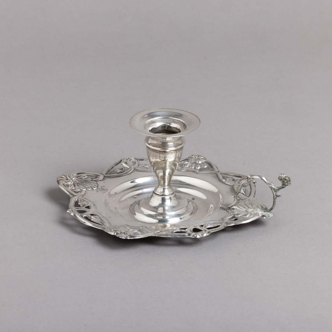 Em metal prateado Christofle e Halphen, pega em madeira torneada, decoração gravada e relevada, monogramadas. Sinais de uso, amolgadelas e desgaste.