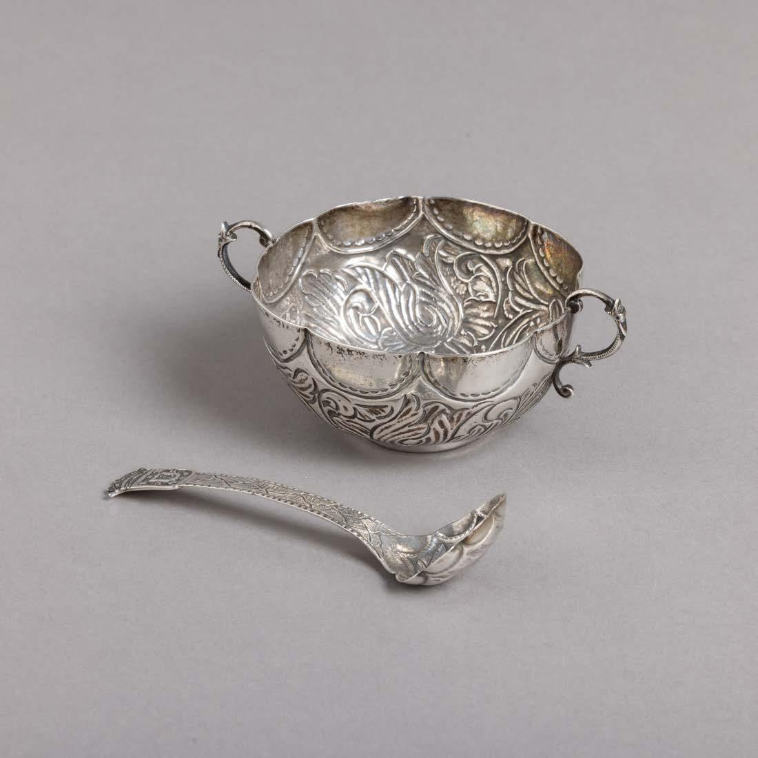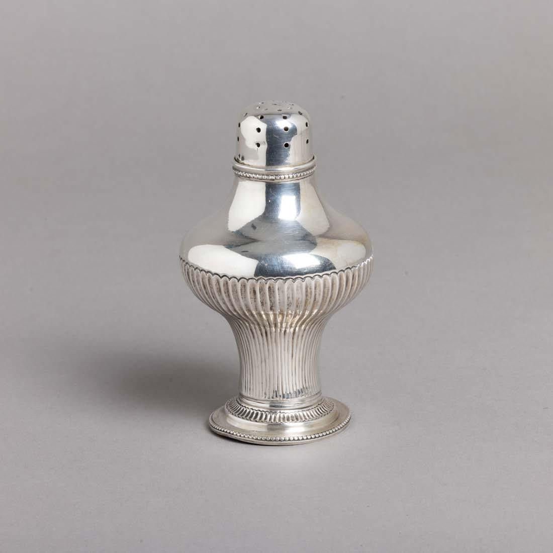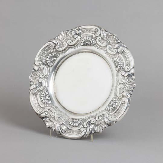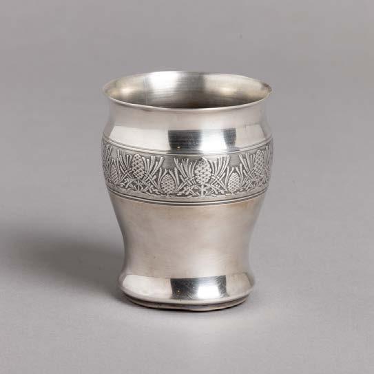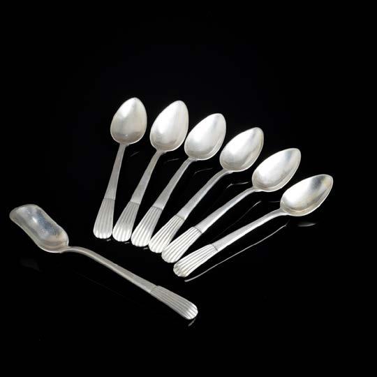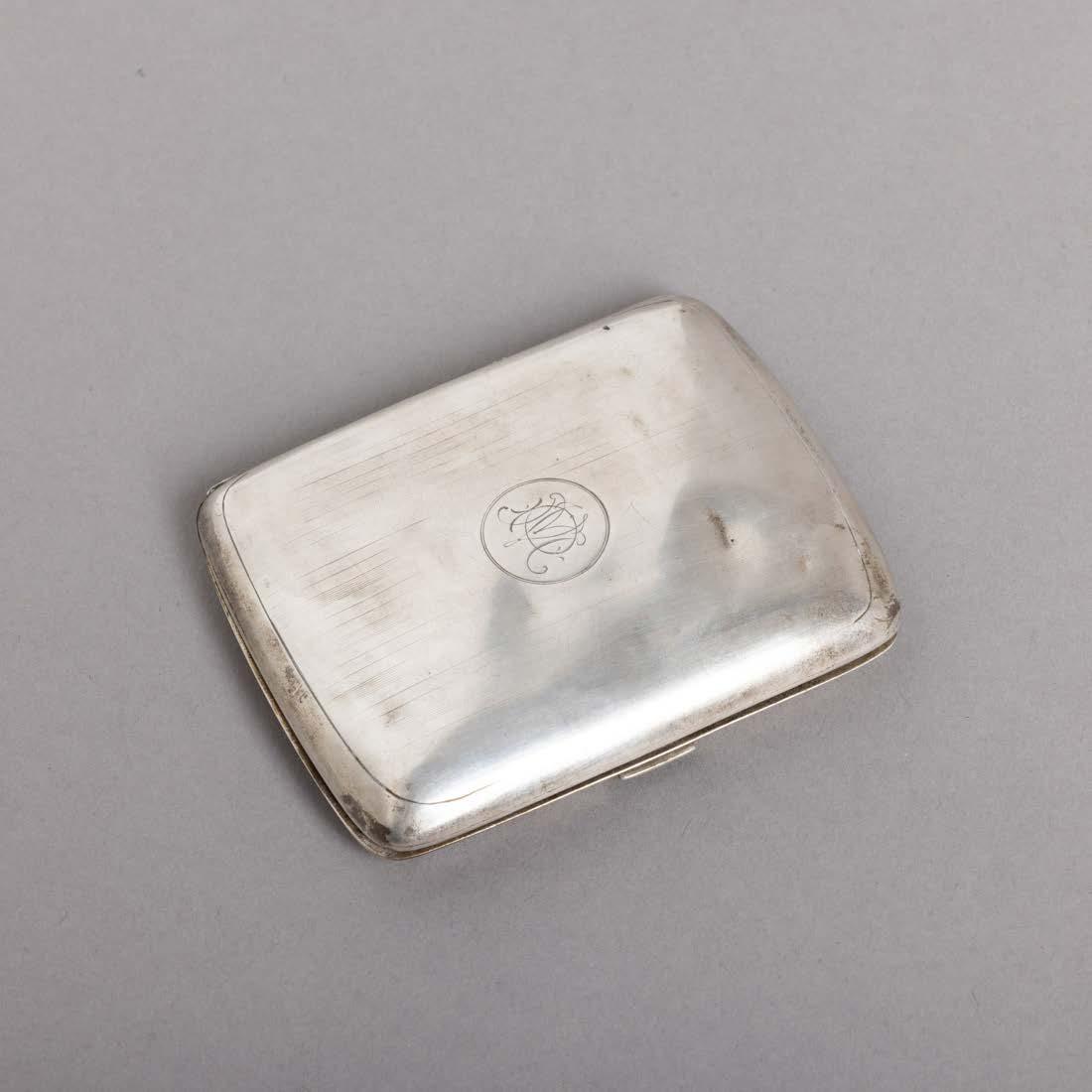 Em metal prateado Christofle e Halphen, pega em madeira torneada, decoração gravada e relevada, monogramadas. Sinais de uso, amolgadelas e desgaste.