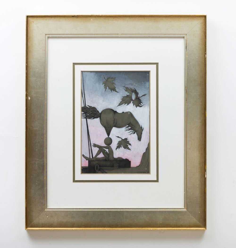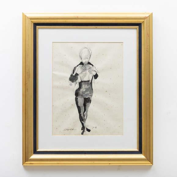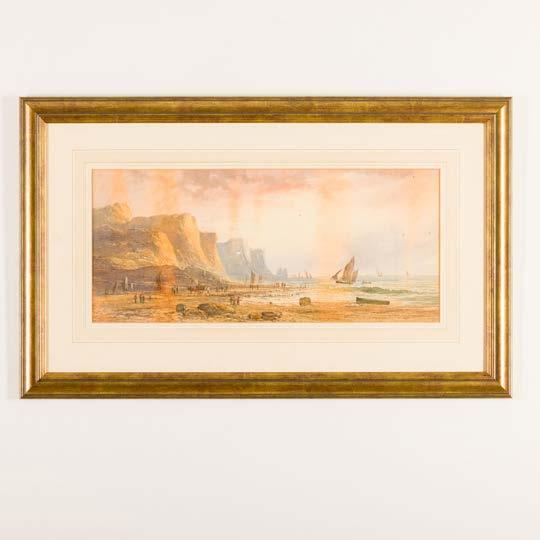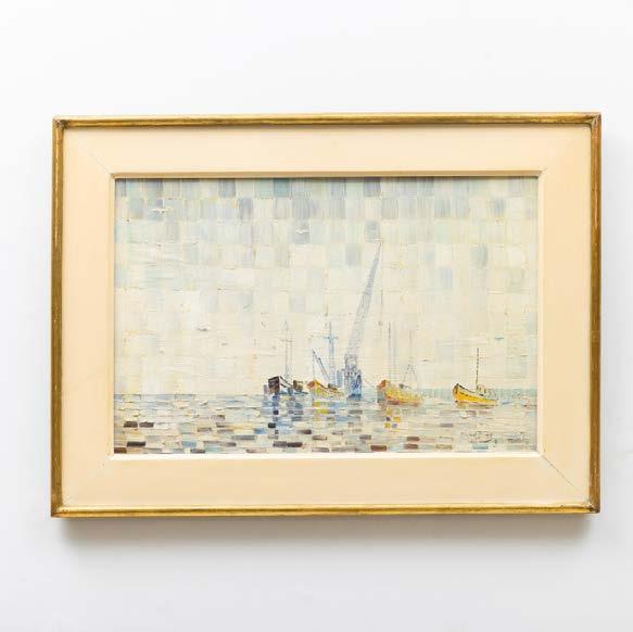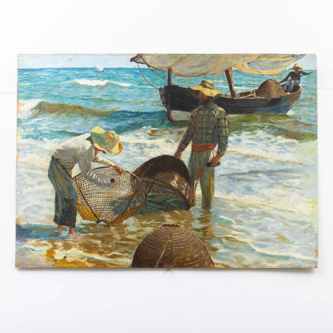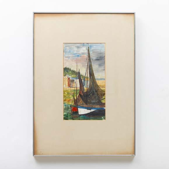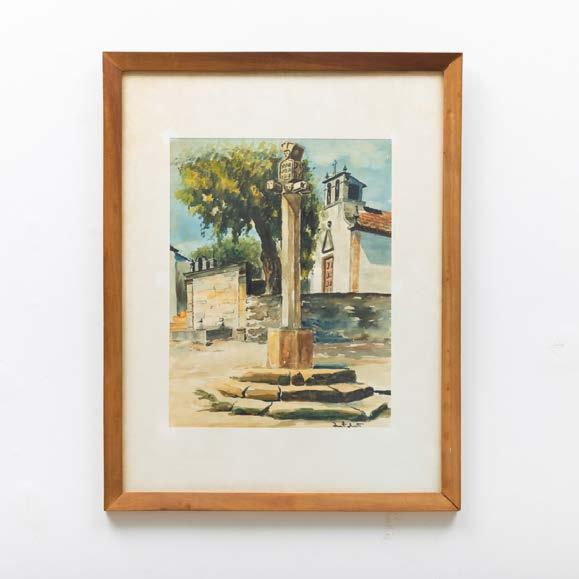 “Marinha com figuras” Aguarela sobre papel, assinada. Picos de acidez.