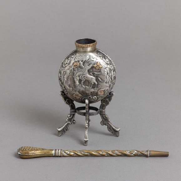Em mármore, aplicações em prata dourada portuguesa contraste javali (1887-1937) de 833. Sinais de uso e pequenas amolgadelas.