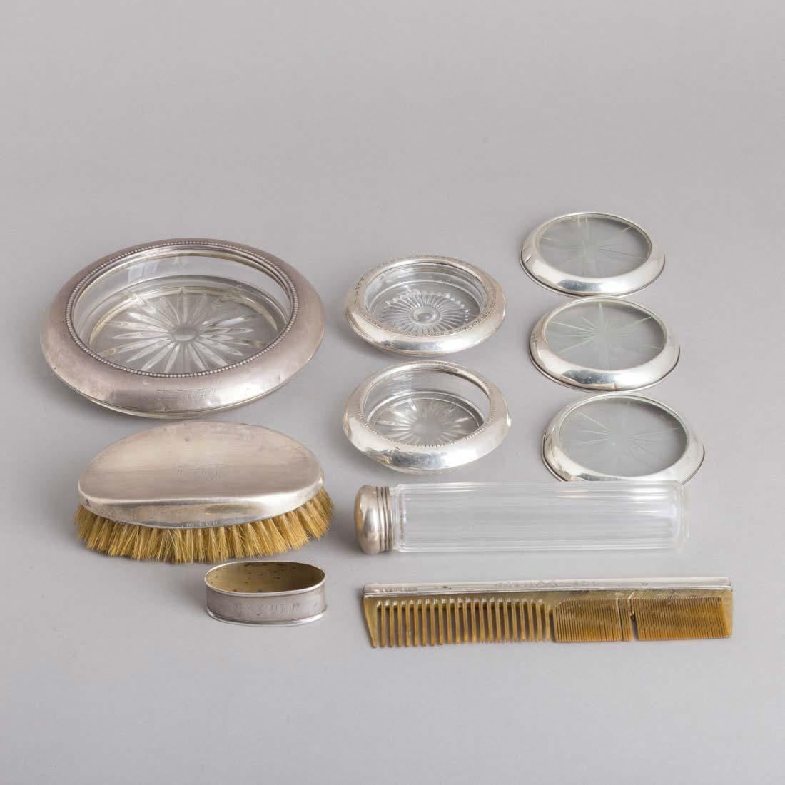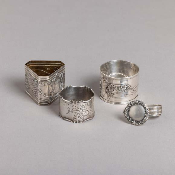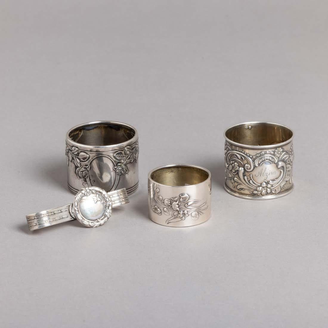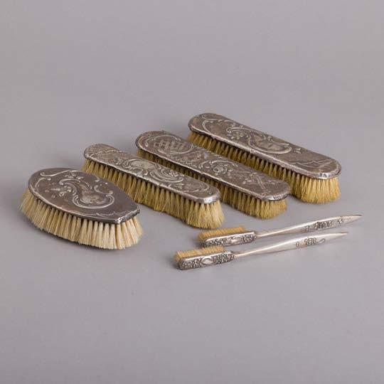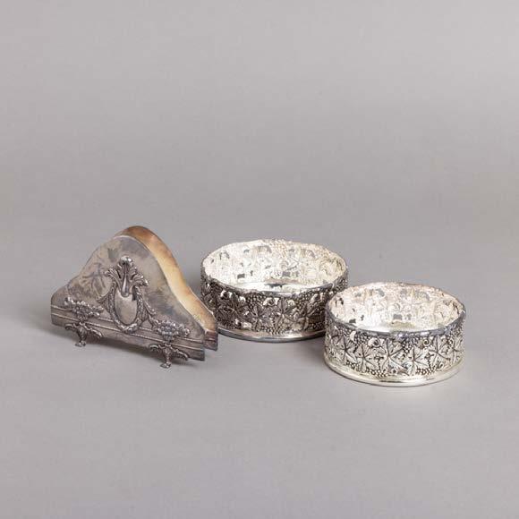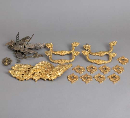 Em diferentes metais, decoração relevada e vazada, grande parte dourada Composto por aproximadamente 28 peças. Sinais de uso e pequenos defeitos.