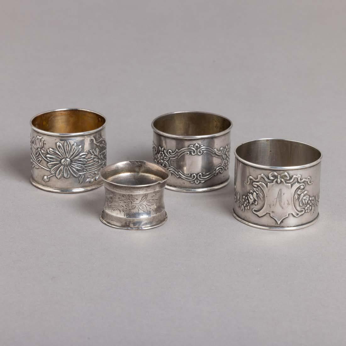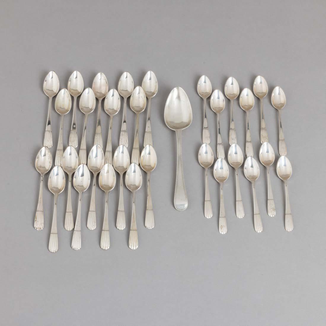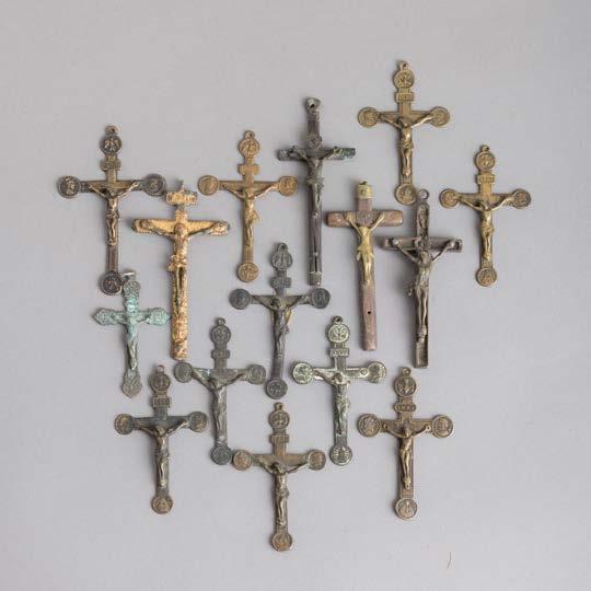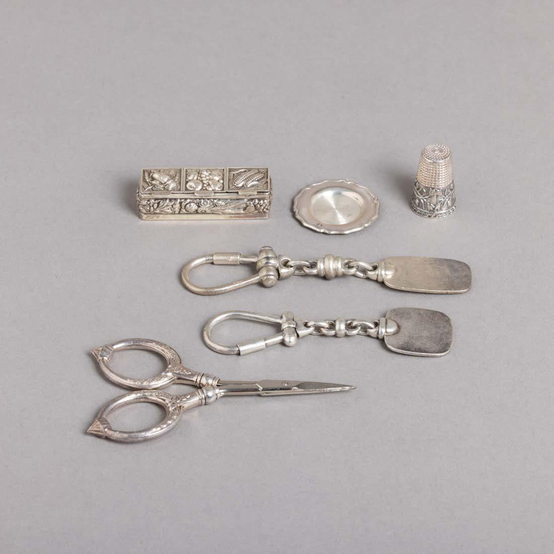 Em diferentes metais, decoração relevada e vazada, grande parte dourada Composto por aproximadamente 28 peças. Sinais de uso e pequenos defeitos.