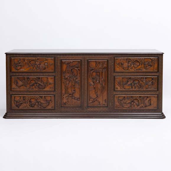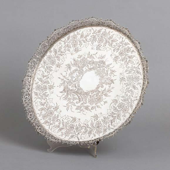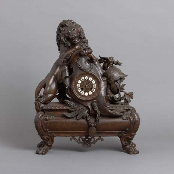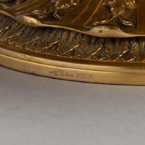 Em metal patinado, decoração relevada e vazada “grifos”