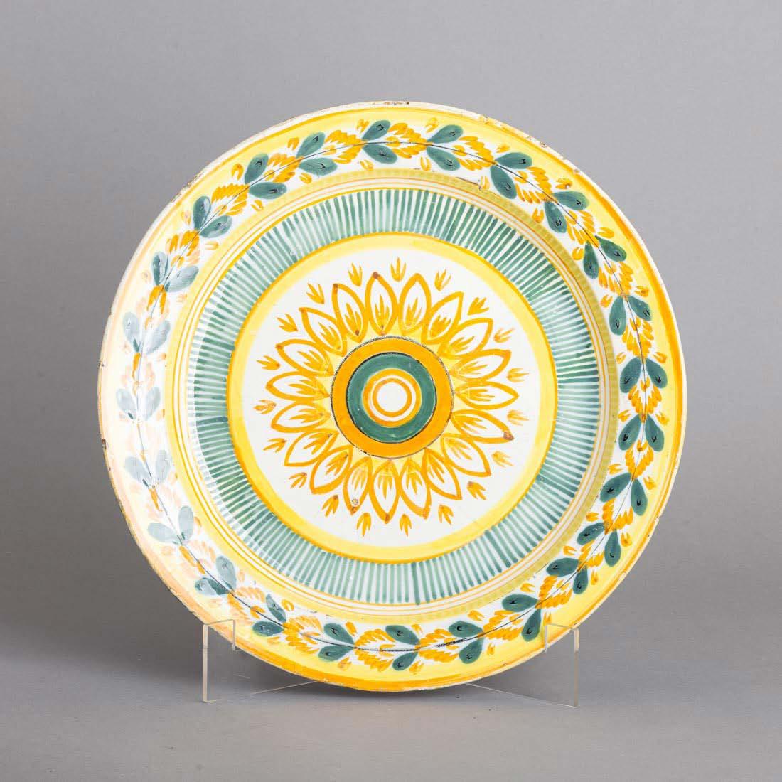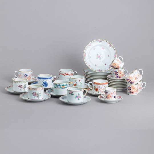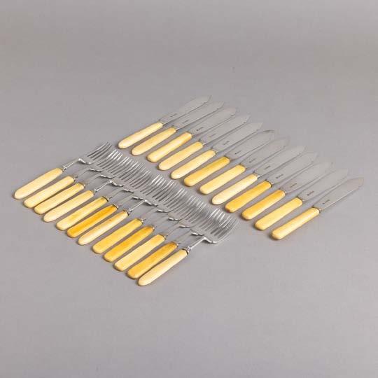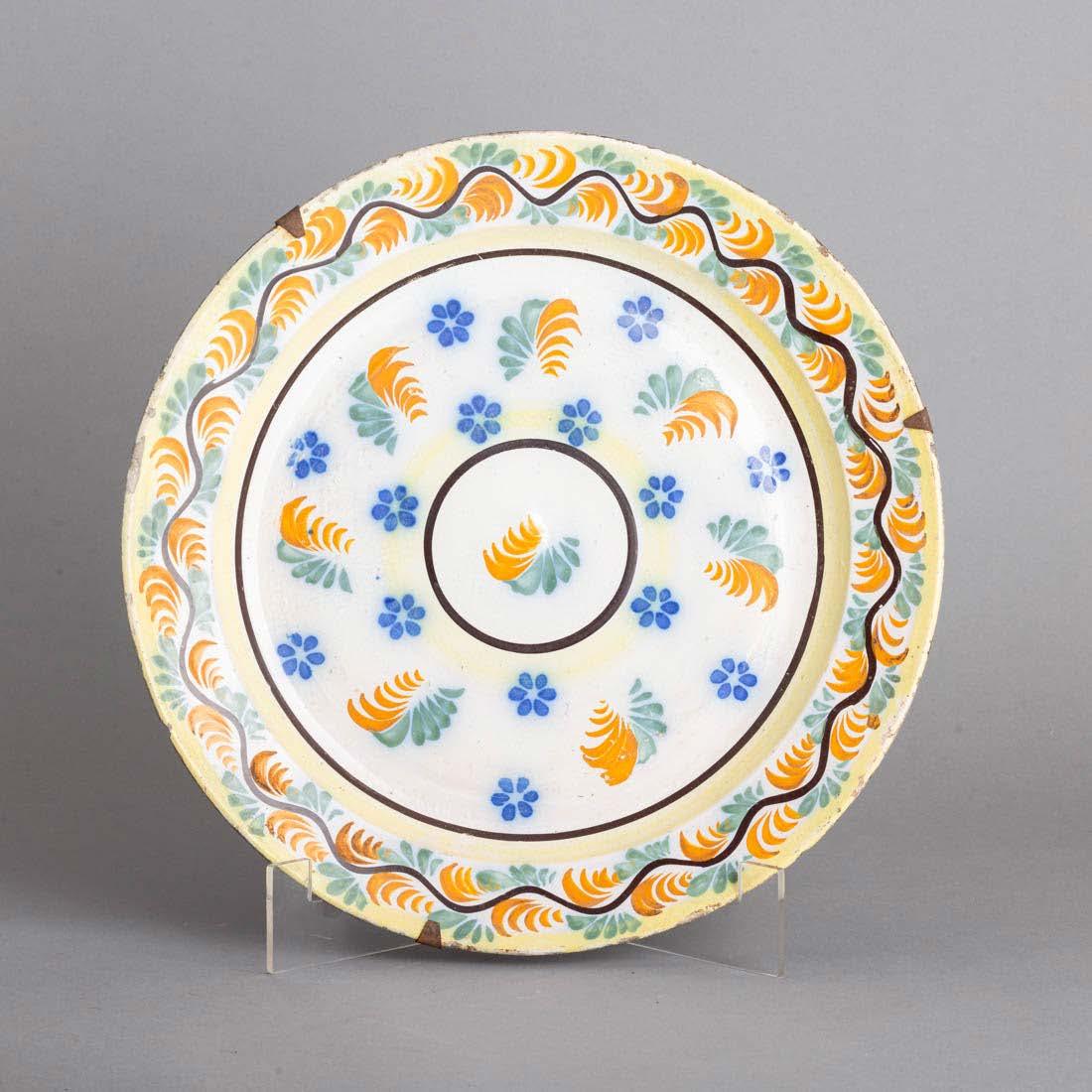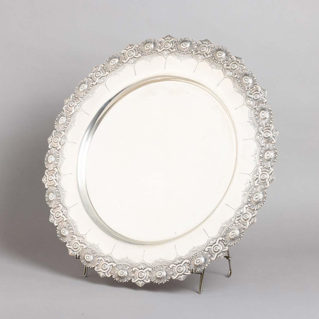 Em loiça pó de pedra inglesa, Minton, datado de 1864, decoração policromada no bordo com friso neoclássico. Composto por 2 pratos de servir, 2 pratos com pé, 6 pratos rasos, 6 pratos fundos e 6 pratos de sobremesa. Sinais de uso.