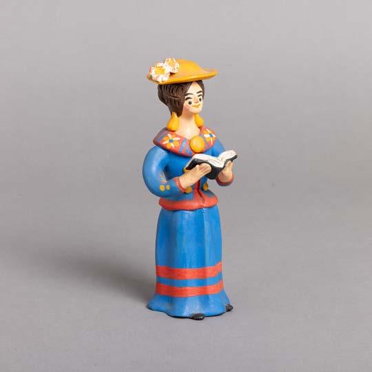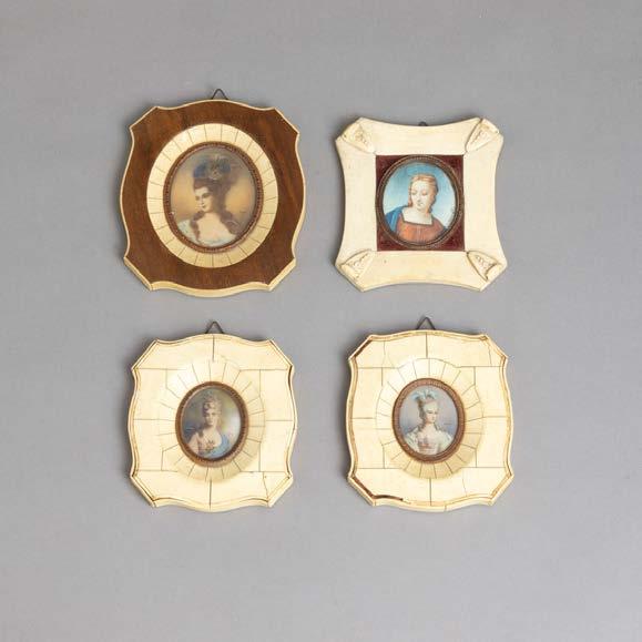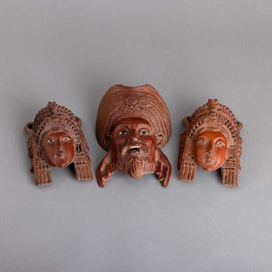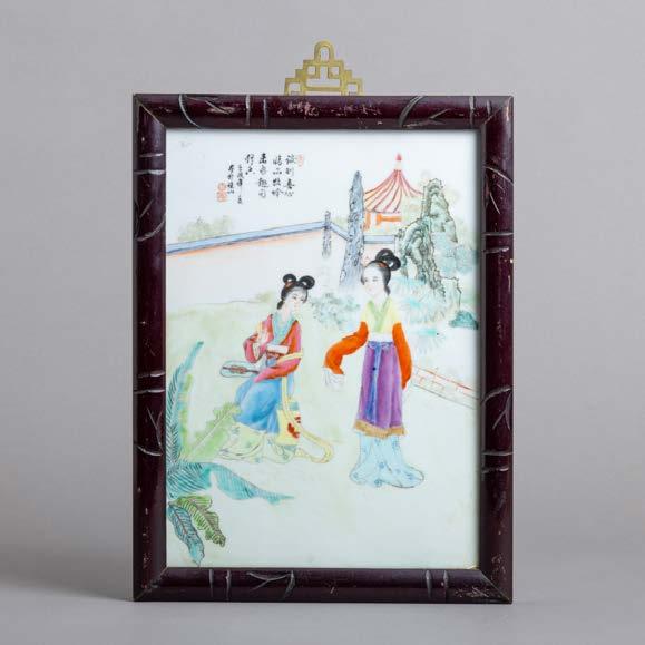 Em cerâmica vidrada decoração policroma, assinado. Emoldurado. Pequenas esbeiçadelas e alguns com cabelo.