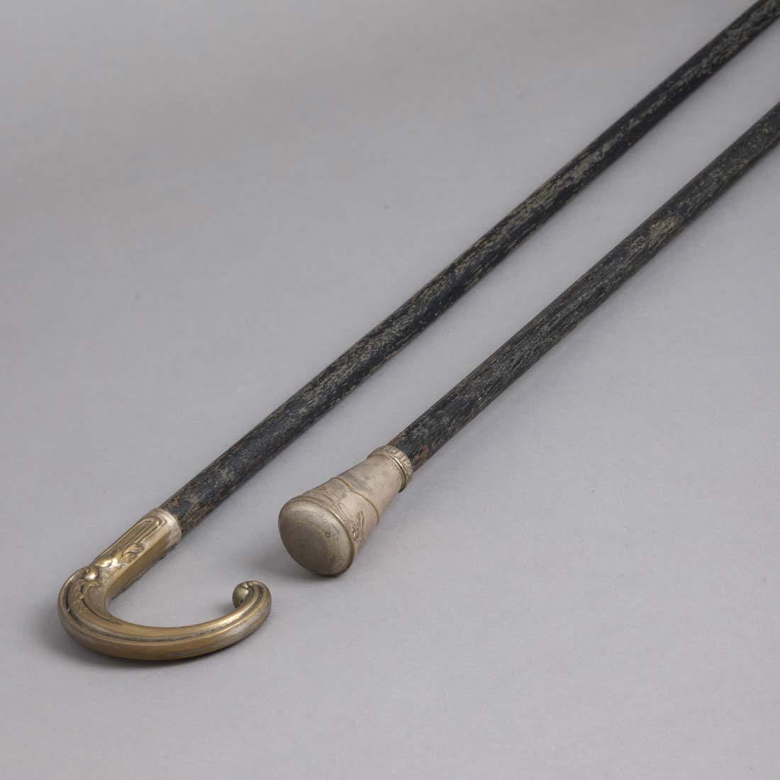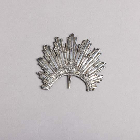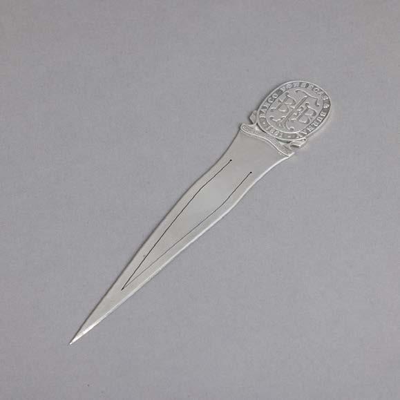 Em osso e metal gravado “motivos geométricos”. Japão. Sinais de uso, vestígios de cola e pequenas falhas.