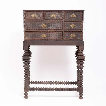 Em madeira, ferro pintado e metal dourado, marcados “Peugeot Frères” e “Au Parfait Broyeur”. Pequenos defeitos, vestígios de xilófagos e um sem pé.