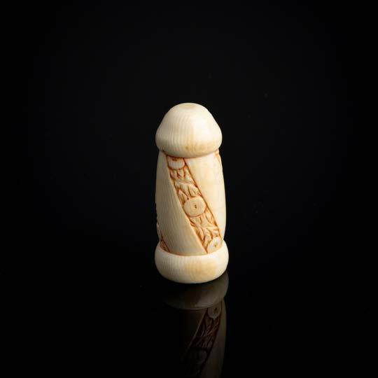 Esculpido em osso, decoração relevada “espiralados”. Sinais de uso e pequenos defeitos.