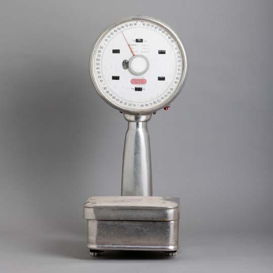 Em metal lacado a negro e a vermelho, marcadas “Salter Postal Scale” e “EKS - Fabriqué en Suède”. Sinais de uso, desgaste e oxidações.