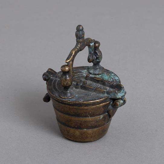 Em cobre e latão. Sinais de uso, pequenos defeitos e oxidações.