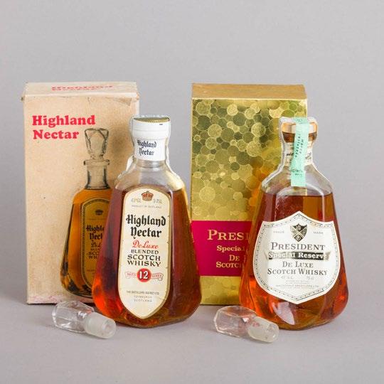 WHISKY PRESIDENT SPECIAL RESERVE E HIGHLAND NECTAR DELUXE 12 ANOS Duas garrafas 750ml, caixas originais. Scotch Whisky. BASE: 40 €