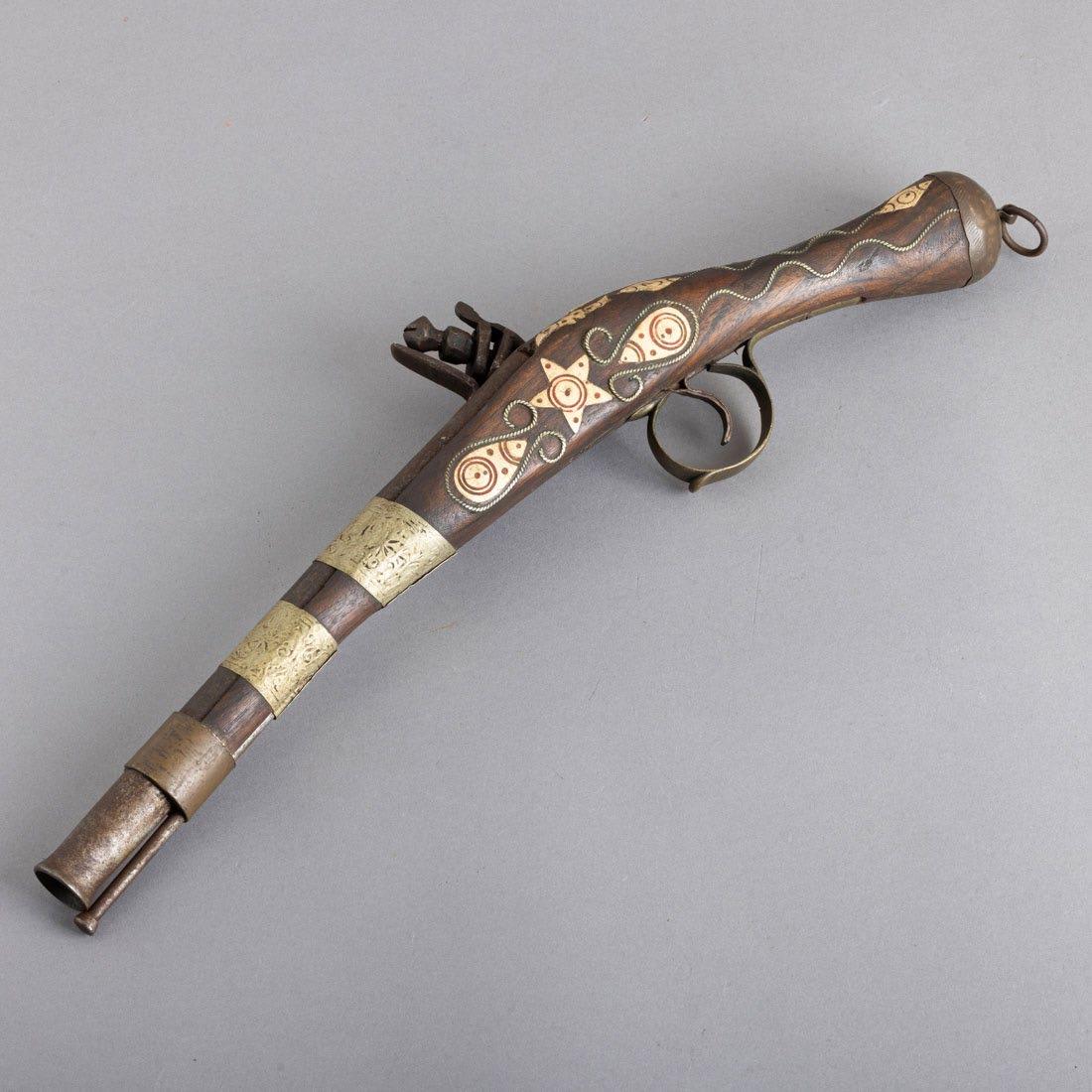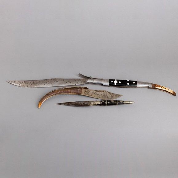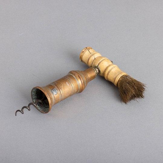 Em cobre, pega em osso torneado e outos materiais. Inglês, Séc. XIX. Sinais de uso, falhas e fissuras.