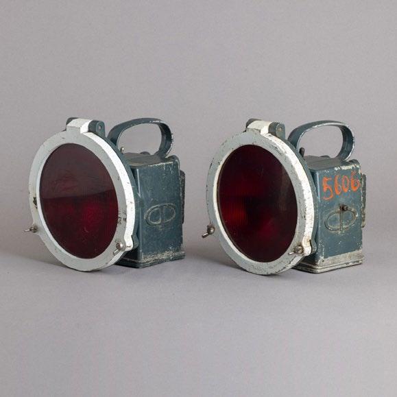 Em chapa de metal pintado, lente em vidro. Sinais de uso, amolgadelas e pequenos defeitos.