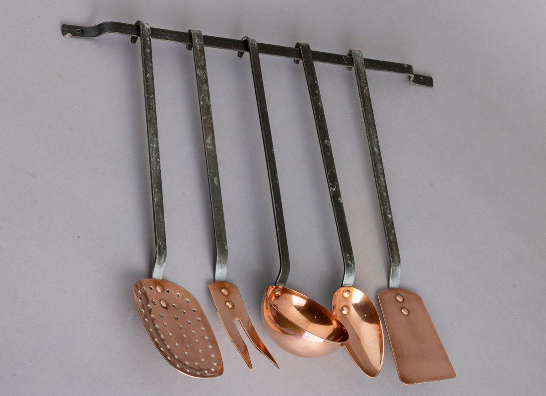 cobre, suporte e pegas em ferro. Sinais de uso.
