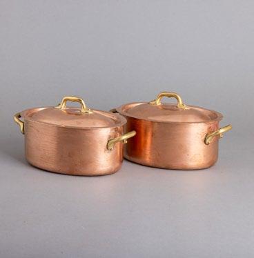 Em cobre estanhado no interior, pegas em latão. Sinais de uso e amolgadelas.