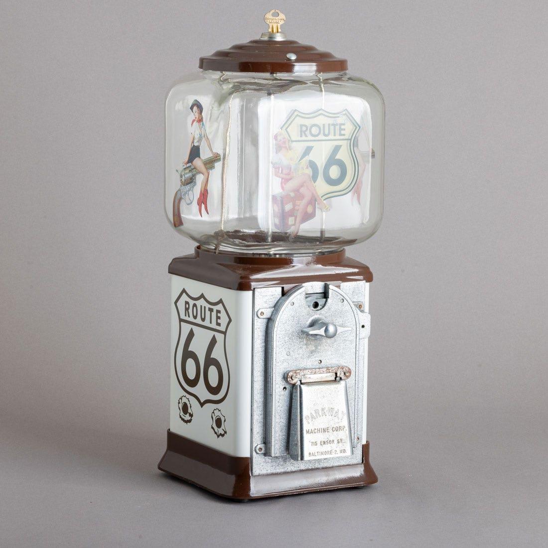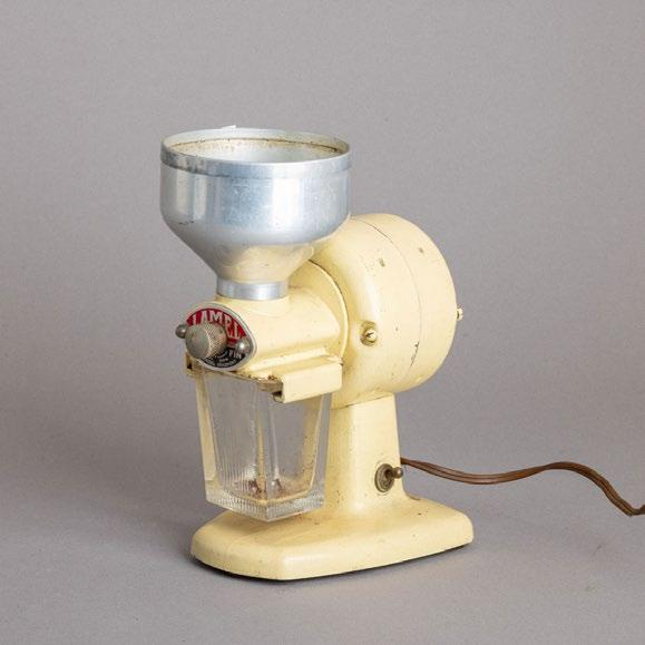 Em ferro pintado, metal e pega da manivela em madeira. Marcada “U.S Patent”. Sinais de uso, alguma oxidação e falhas.