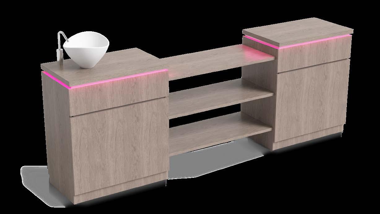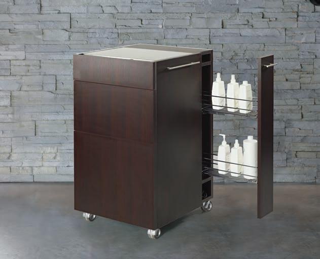 This unit, which comes complete with wash basin and a cabinet with an adjustable shelf, is designed to help improving the practitioner’s efficiency and the working area, while matching with the Spa tables finishes.