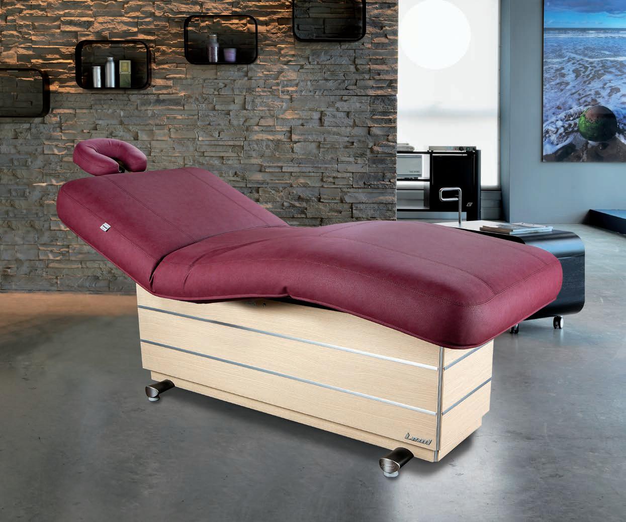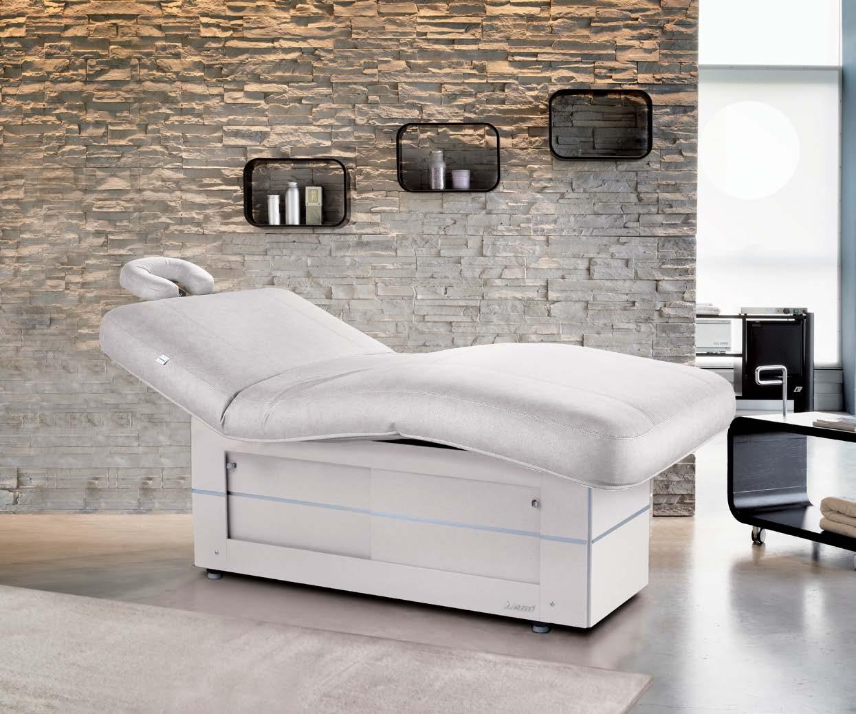 All EVO spa tables feature a mattress with HBS Stress Relief System. This is the innovative system by which the head, the back and the shoulders can be stimulated without stretching and contractures, thanks to the possibility of lowering the armrests and adjusting the headrest.