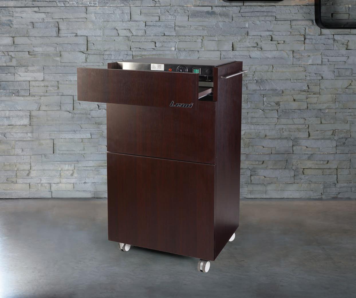 This elegant cabinet, which comes complete with a drawer and with an adjustable shelf, is designed to help organizing the work area while at the same time matching the Lemi Spa tables finishes.