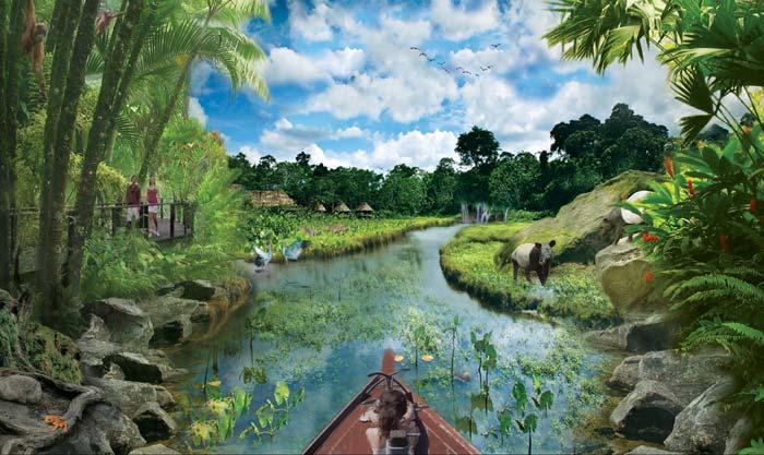 Old Town where guests can meet iconic legends of the past like mermaids. The larger 43,290sq m (465,970sq ft) Castle Island will be populated with characters such as Merlin the wizard, King Arthur, the three witches and a dragon to create a medieval kingdom, whereas the 31,670sq m (340,893sq ft) fun-filled Creature Lagoon village will entertain children with Griffins and the Loch Ness Monster. Lost Valleys will comprise mythical pathways and thrilling rides, while the final zone – Land of Legends – will allow visitors to discover the remains of ancient civilisations with Egyptian tombs and Mayan temples.