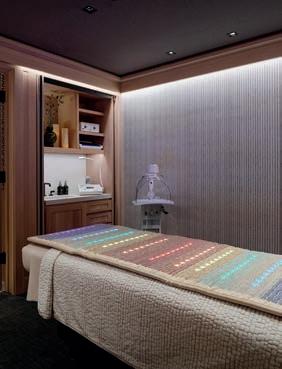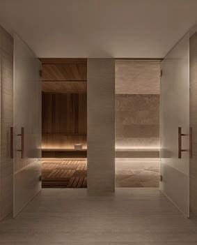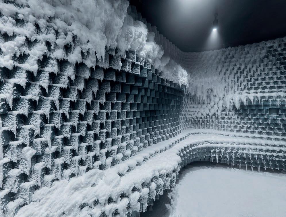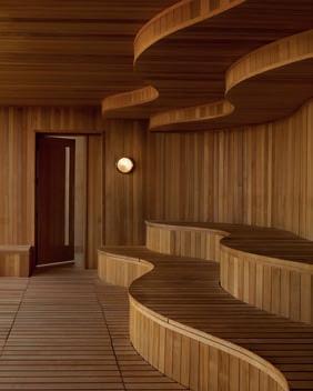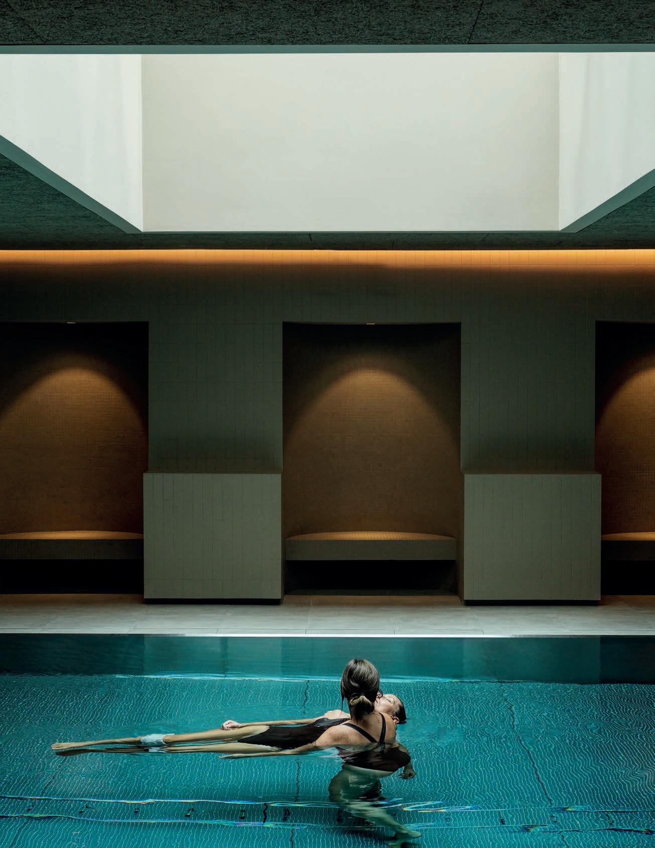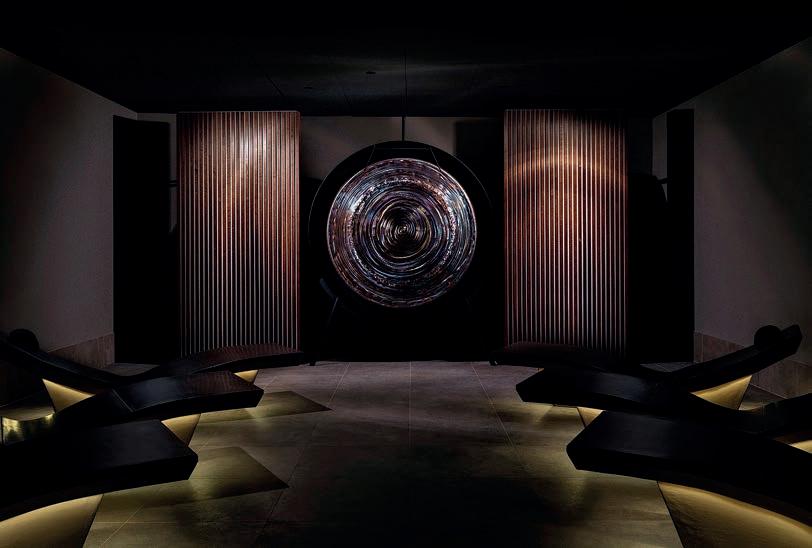 The focus: the art of sauna – the shared experiences and smaller intimate sessions. From the moist and light hammam, to the dark Nordic Sauna. I really appreciate the contrast between the Nordic sauna and the snow room – the finale of the sauna journey. In the sauna, you experience intense heat and the tactile materiality of dark ash wood. In the snow room, you cool down in icy air and snow, where the crisp light and metal surfaces amplify the sensation of cold. A fitting end to a truly unique and sensory journey. Another favourite part is the Gongmatic room. A vibrant experience that leaves no one indifferent. ●