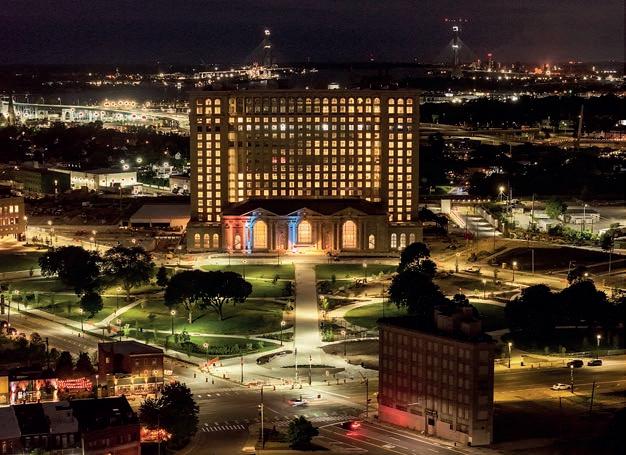 Michigan Central has reopened at last – a mixed-use complex with o ces, public spaces, event venues and a future luxury hotel. Ford Motor Company, which purchased the property in 2018, poured nearly US$1 billion into the restoration. Lost architectural elements were recreated by 3D printing; the original, long-dormant quarry was even reopened to source matching stone.