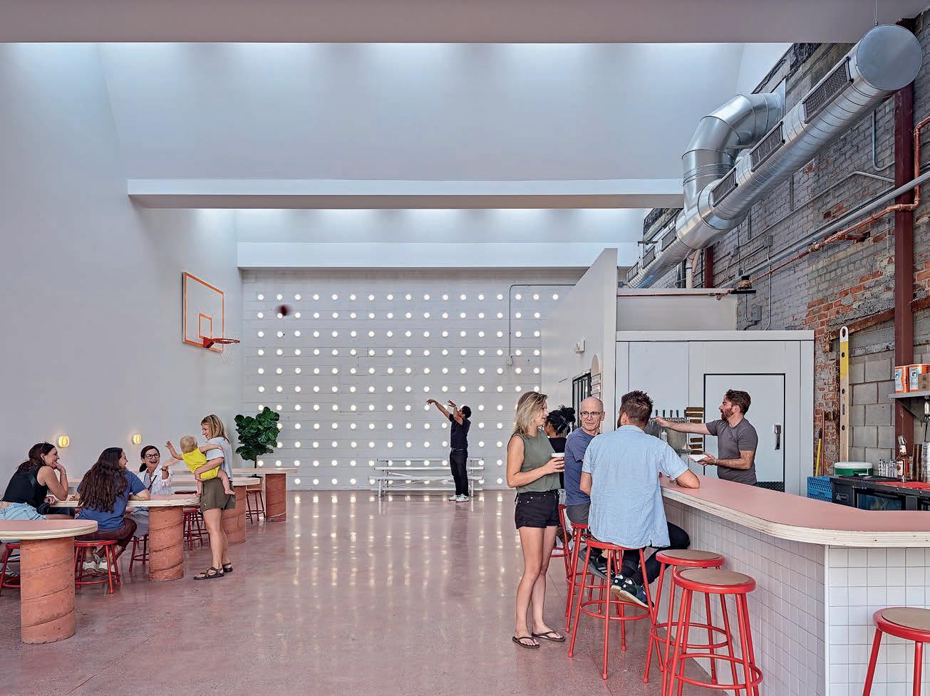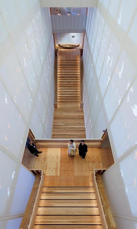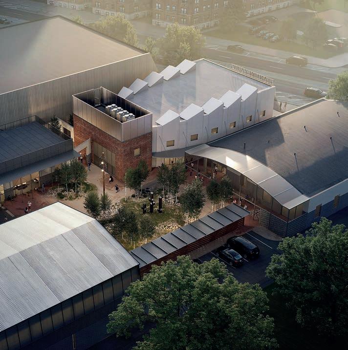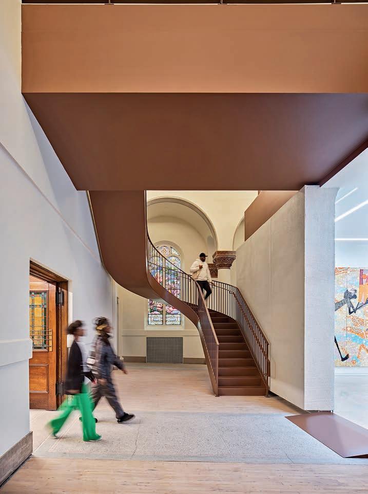 Nearby, a former church has become The Shepherd, a creative campus designed by Peterson Rich O ce. The architects converted the sanctuary into a sweeping exhibition