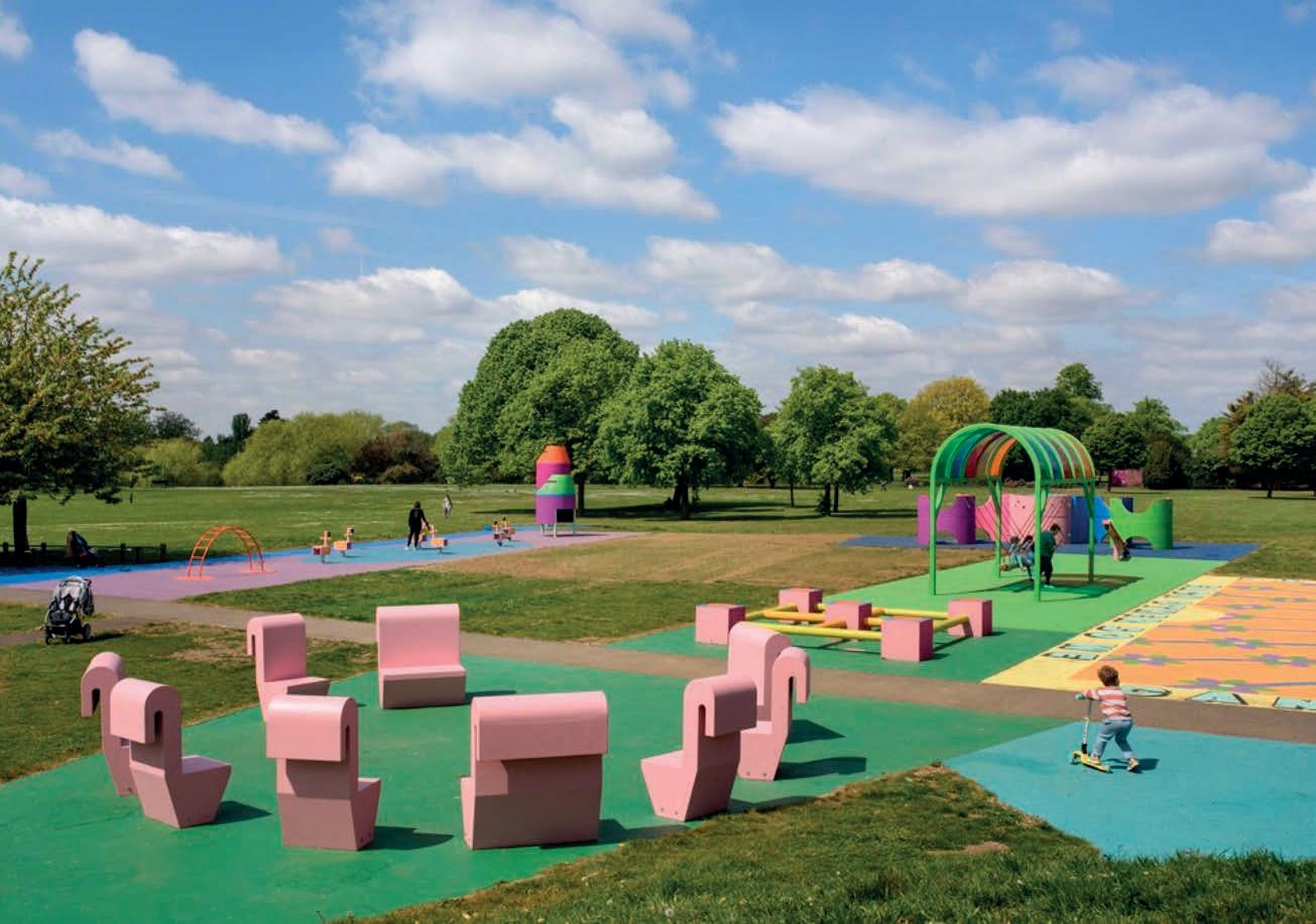 British-Nigerian designer Yinka Ilori – who we interview on page 56 – is a huge believer in the transformative power of play. From his flamingo-inspired playpark in east London