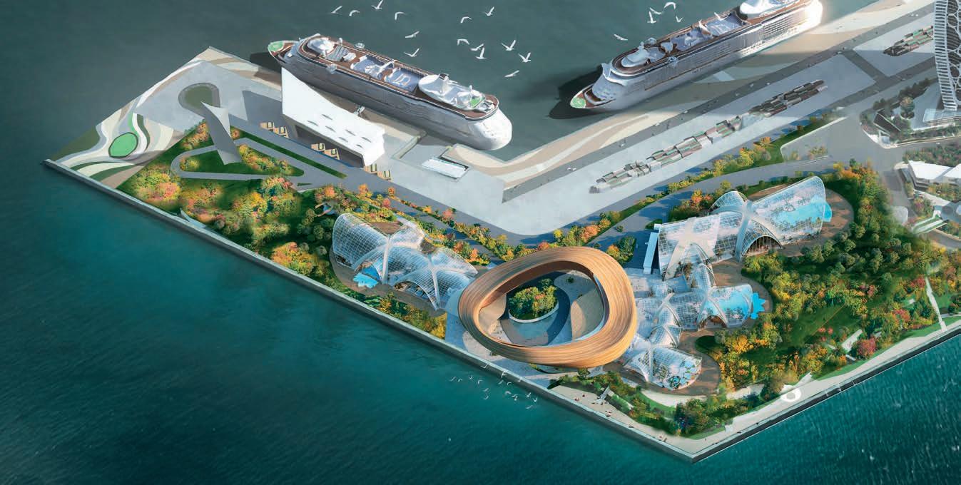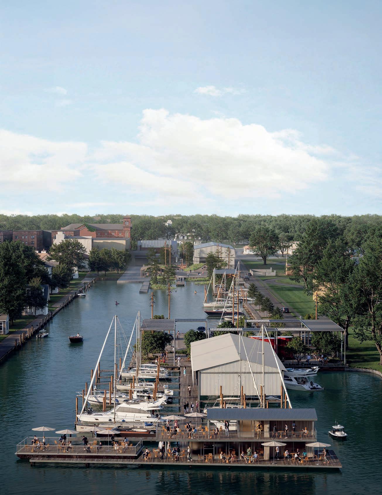 The plan envisions a chain of interconnected yards –“essentially micro-neighbourhoods,” says David – each with its own character. One will feature decommissioned gas tanks; another will open into rolling hills and a waterfront park. There will be an outdoor gallery, a barbecue and picnic zone and an 85-slip marina with areas for fishing and kayaking. Visitors could return repeatedly and “have a very di erent day there,” says David.