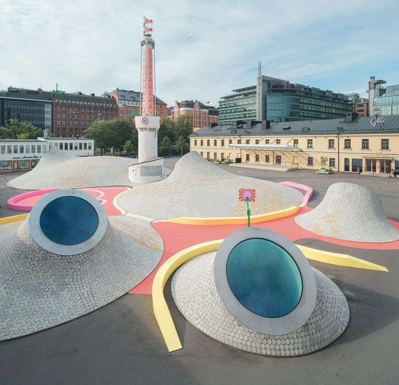 Ilori also uses playful spaces to explore serious issues, such as racism and inequality. In his Transparent Happiness pavilion outside the Amox Rex museum in Helsinki, Ilori highlighted the disparity between Finland’s ranking as the world’s happiest country and the less-visible experiences of racism within it.