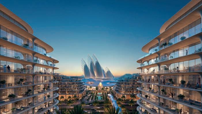 villages’ woven carefully into the landscape. These villages will be connected by shaded streets and pedestrian-friendly plazas that encourage walking, cycling, and e-scooter use, creating an accessible and human-centred public realm. Collectively, the villages are planned to deliver around 1.5 million square metres of commercial and retail space, offering hubs for business, education, and leisure. A sequence of architectural gateways will define key entry points to the district. The most prominent is the 260-metre-high Al Rasheed Gateway tower, envisioned as a striking vertical marker with a tapered, curved form rising from a rounded square base. Another significant intervention, the River Gateway, will reopen a previously inaccessible stretch of the Tigris River, reconnecting the site to one of Baghdad’s most historic natural assets. Additional landmarks, such as the 110-metre National Pavilion, signal the project’s ambition to become a symbol of renewal for the city.