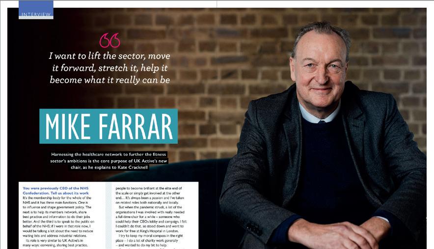 The latest to take up the challenge is the new chair of UK Active, Mike Farrar, who we interview on page 42.