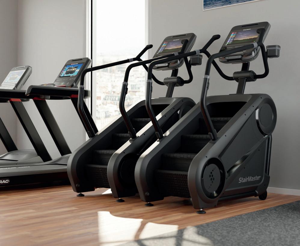 enhanced device connectivity for a user-friendly interface. The StairMaster 4G rounds out the 4 series as the cardio solution for small spaces.