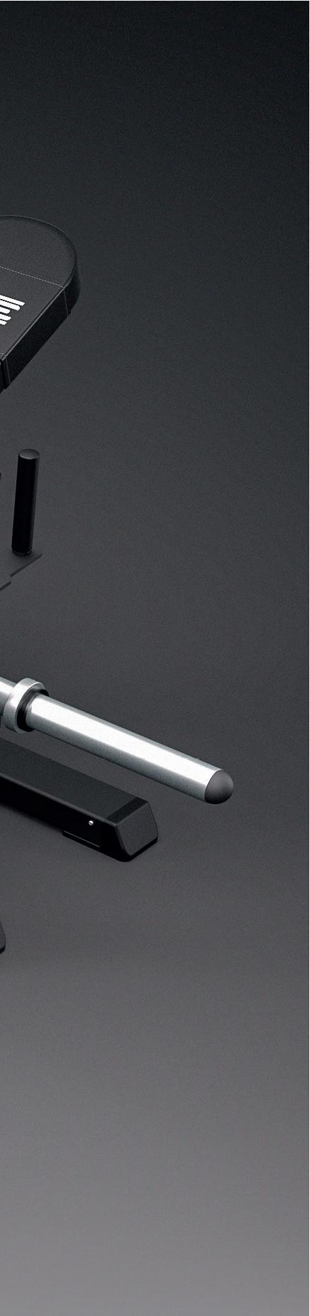 programmes and connect to third party apps. The sled has a footprint of 45” x 28”, and can be stored vertically at 28” x 24”.