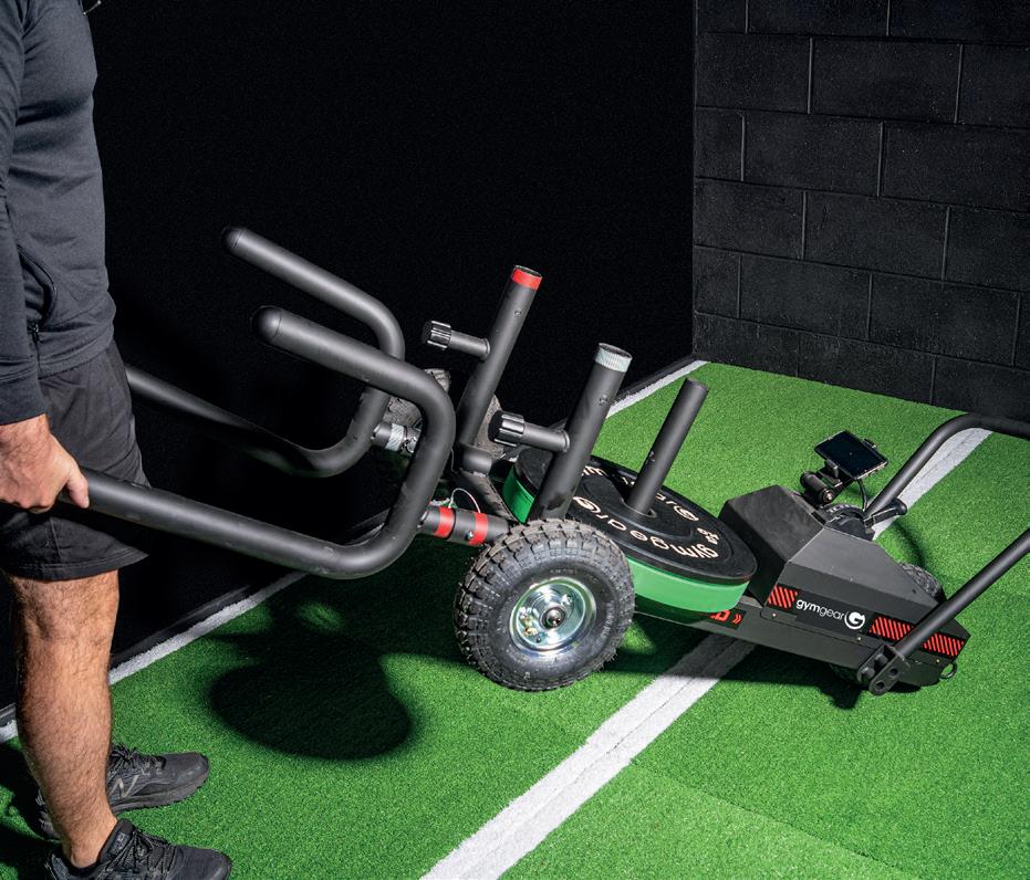 The sled has horizontal and vertical rear handles, allowing for wheelbarrowstyle training and an optional monitor that allows users to track workouts, create interval