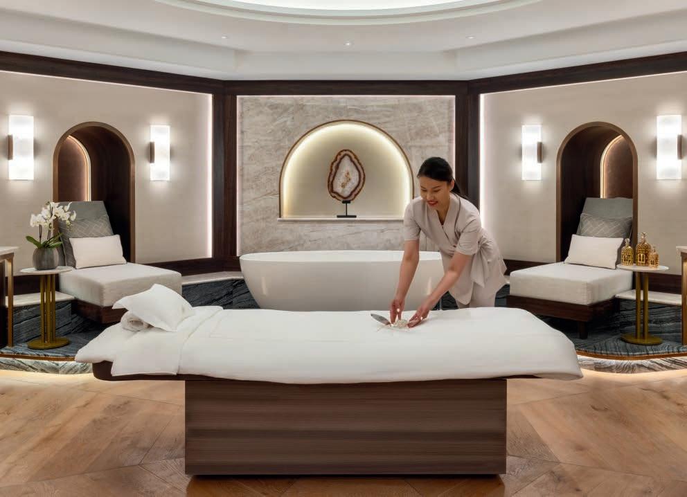 The Trio Luxe begins with an exfoliation and massage with synchronised movements, aromatherapy and sound therapy. It then transitions to a bespoke facial, which includes the application of skincare masks and face massage techniques – namely cupping and gua sha – to leave the face, neck and décolleté firm, bright and nourished. A deep tissue enhancement can be added on for US$30 (€28, £23) more.