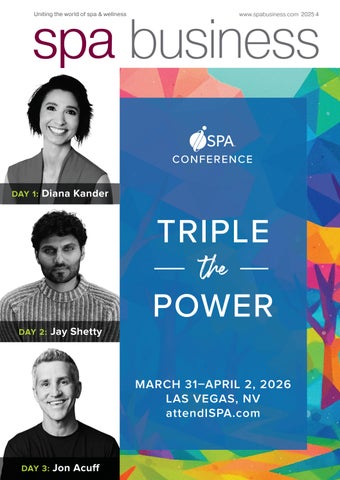 The recent Global Wellness Summit in Dubai explored “wellness through a longevity lens” and we share our highlights on p98. The one clear message from the three days was that wellness must be the foundation of longevity. Without daily habits that support health, even the most advanced interventions fall short. For the sector, this presents a clear opportunity: to lead with sciencebacked modalities, communicate outcomes clearly and align offerings with long-term guest expectations.