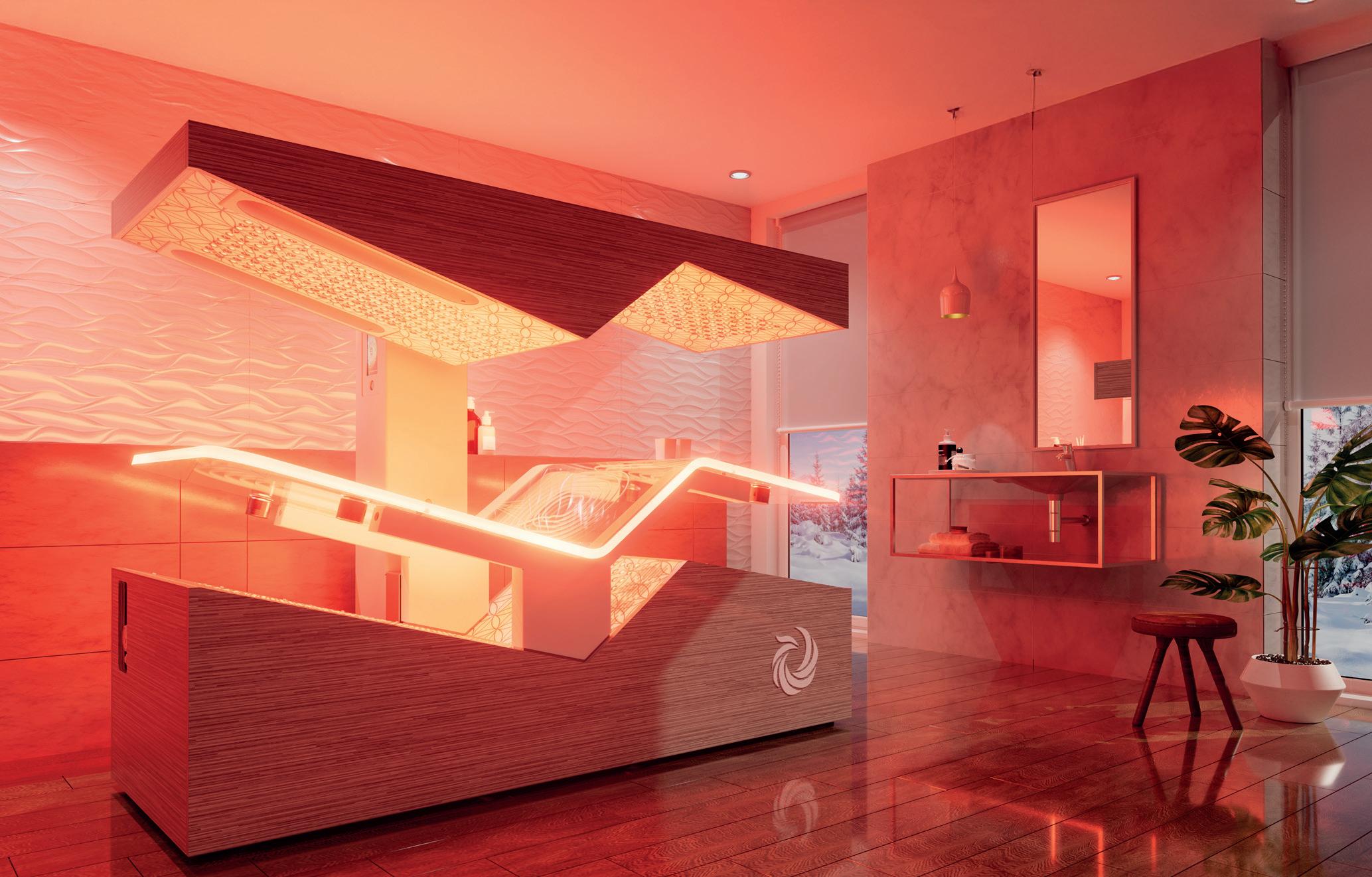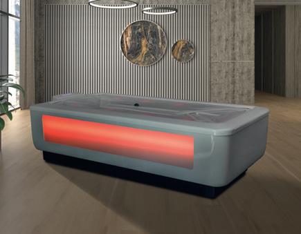 used alongside targeted hydro jet massage (separately rather than simultaneously), the system delivers a dynamic, fully touchless treatment that can be adapted for mental wellbeing, recovery or pain relief, without therapist intervention.