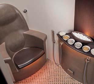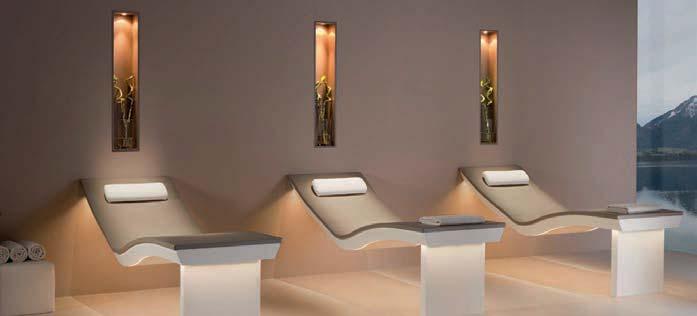 wall to look as if they’re floating, while the headrests are ergonomic and new, indirect lighting enhances relaxation. Capable of variation in both width and depth in 10cm stages, Lounge Q, says KLAFS, can be adapted to fit even difficult spaces and tight corners. Individual installation options open up other possibilities, such as the introduction of a natural stone wall or a glass front.
