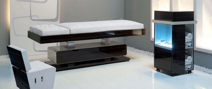 As its name implies, Clap Tzu’s WaveMotion Bodywork Table – distributed by SpaEquip – can rotate, rock and tilt, producing fluid movements to enhance bodywork treatments. The top – which locks into place for traditional massage services – rotates 360°, in addition to inclining and tilting up to 7° in any direction. With each massage, the height adjustable table gently rocks the client, offering the sensation of floating.