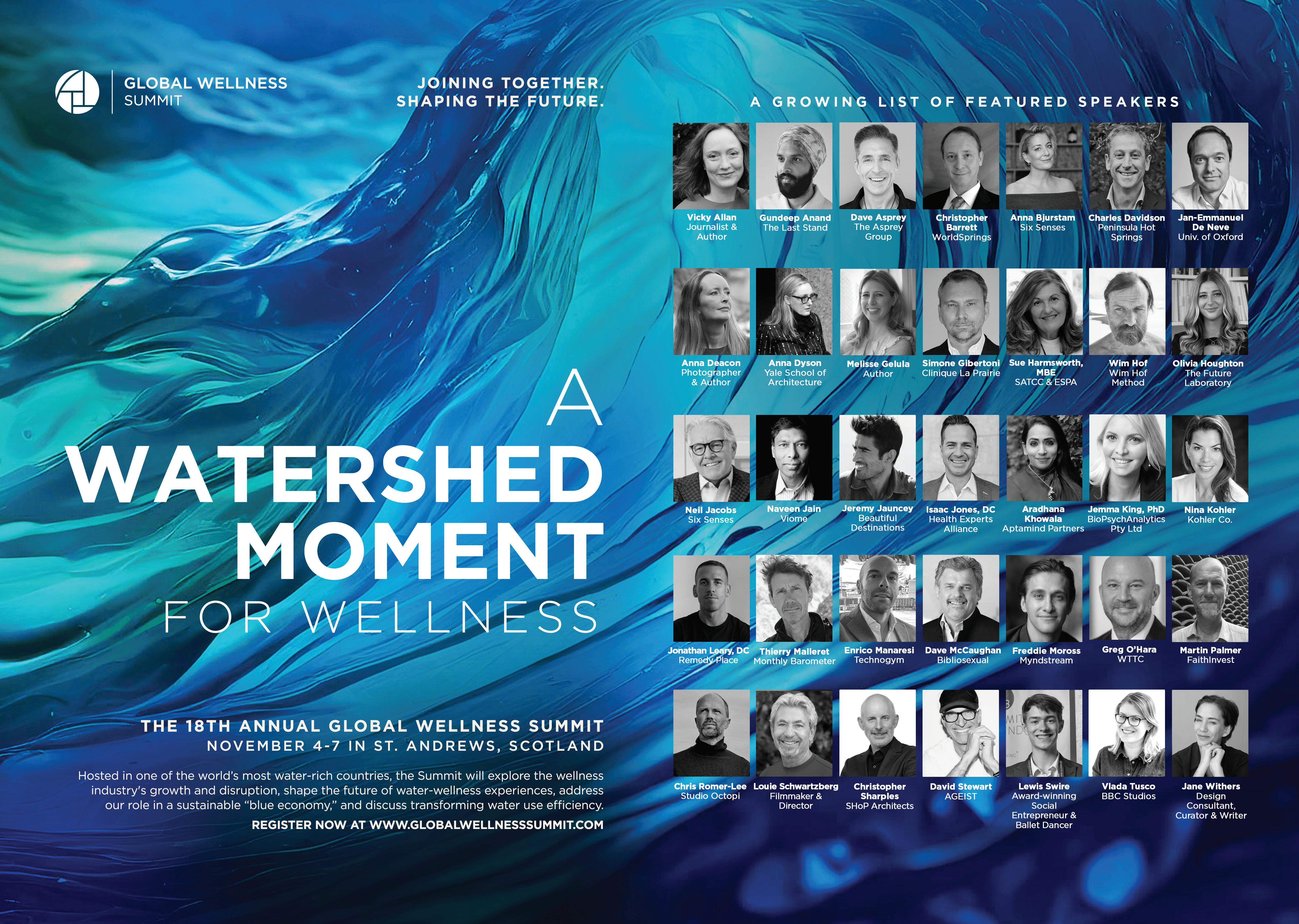 Confirmed speakers include Andrew Gibson, advisor, client representative and consultant to the wellbeing real estate, resort and hotel industries; George Gaitanos, chief operating and scientific officer, Chenot Group and Niamh O’Connell, group