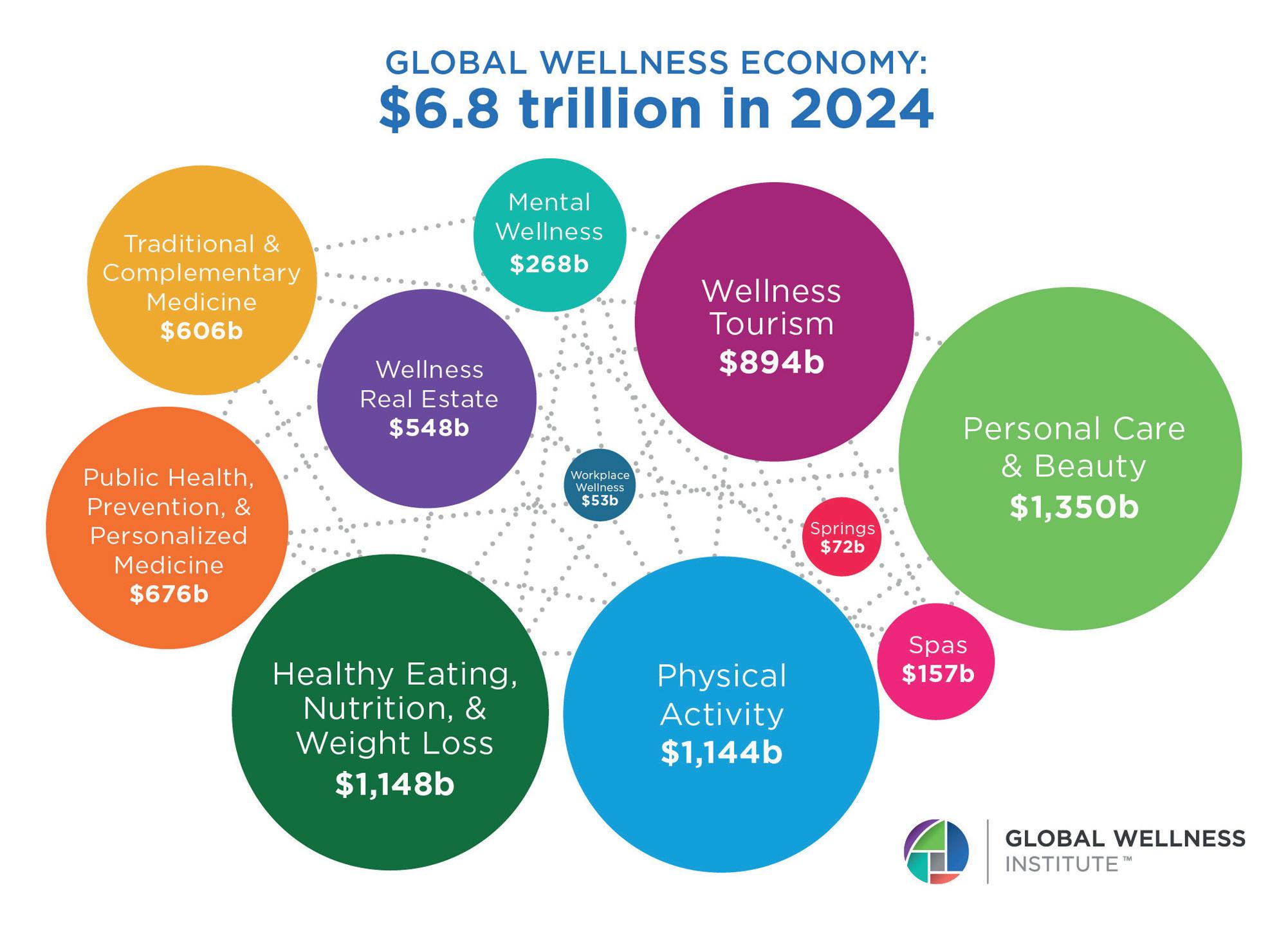 The global wellness economy reached US$6.8 trillion in 2024, according to research published on 19 November by the Global Wellness Institute (GWI).