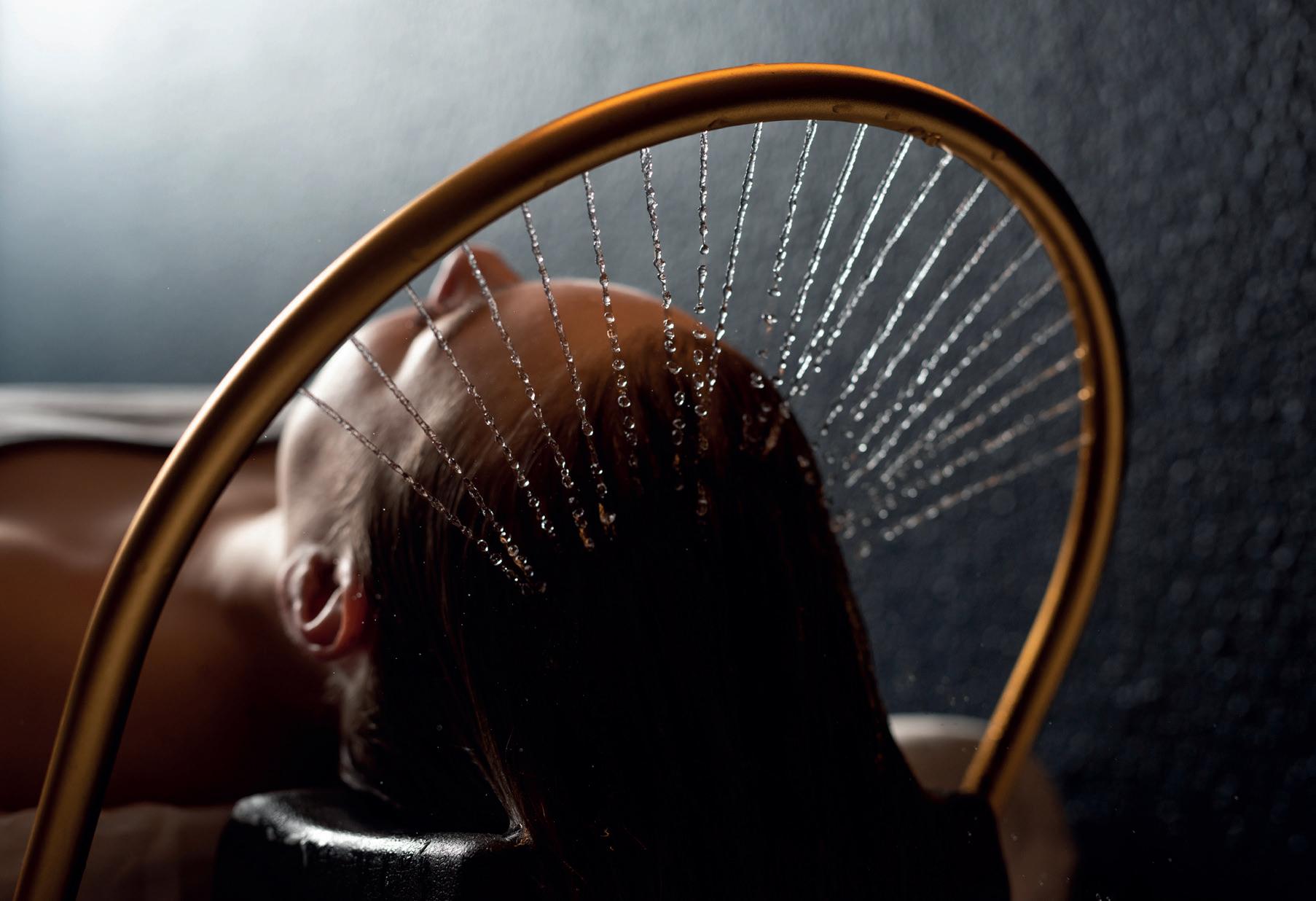The head spa’s continuous arch of flowing water delivers a relaxing ritual