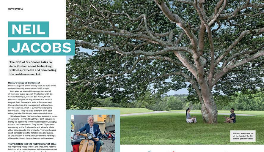 In this issue we enjoy a look at a number of new developments globally, including Lanserhof Sylt (p66), with its beautiful thatched roof, Banyan Tree Veya (p20) and Soneva Soul (p86), the latest concept from creative powerhouse, Sonu and Eva Shivdasani.