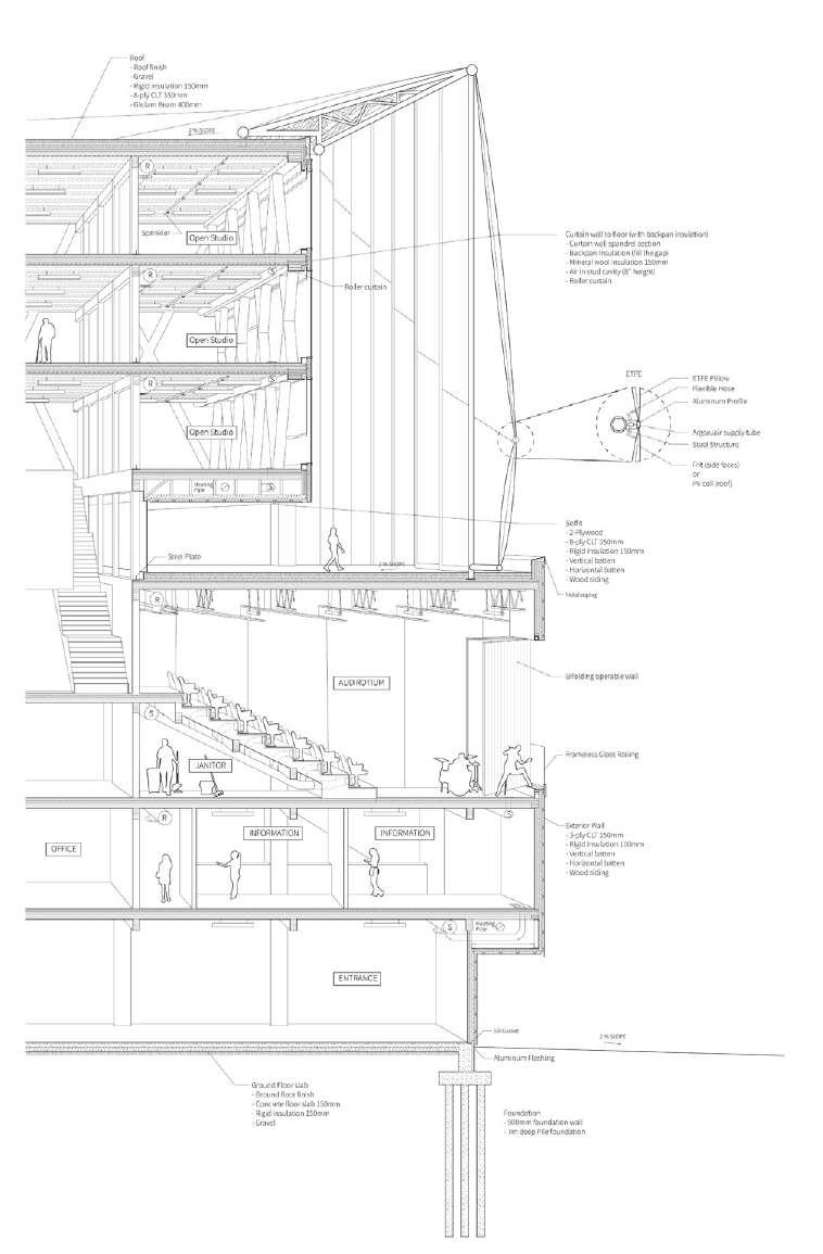 Daylighting studies indicated that the south side of the site, in the direction of excessive sunlight, is back to the adjacent lots or the residential area where privacy is very important. Therefore, getting sunlight as well as keep distance from adjacent lots is a very critical thing for this project. ETFE, recyclable translucent polymer film, used as the buffer zone filter to try to solve the problem of lighting, heating and power supply.