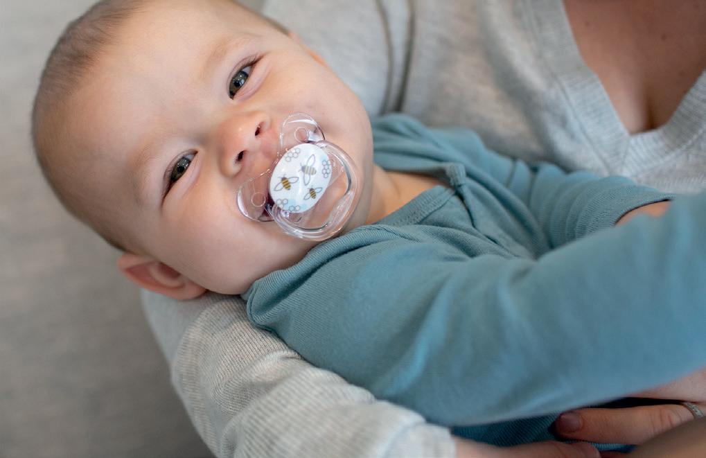 Premium soothers in natural rubber and silicone, o ering symmetrical, anatomical, and round nipple shapes— supporting every baby’s comfort needs.