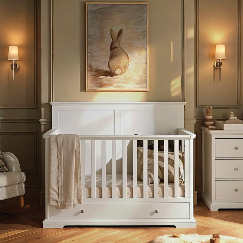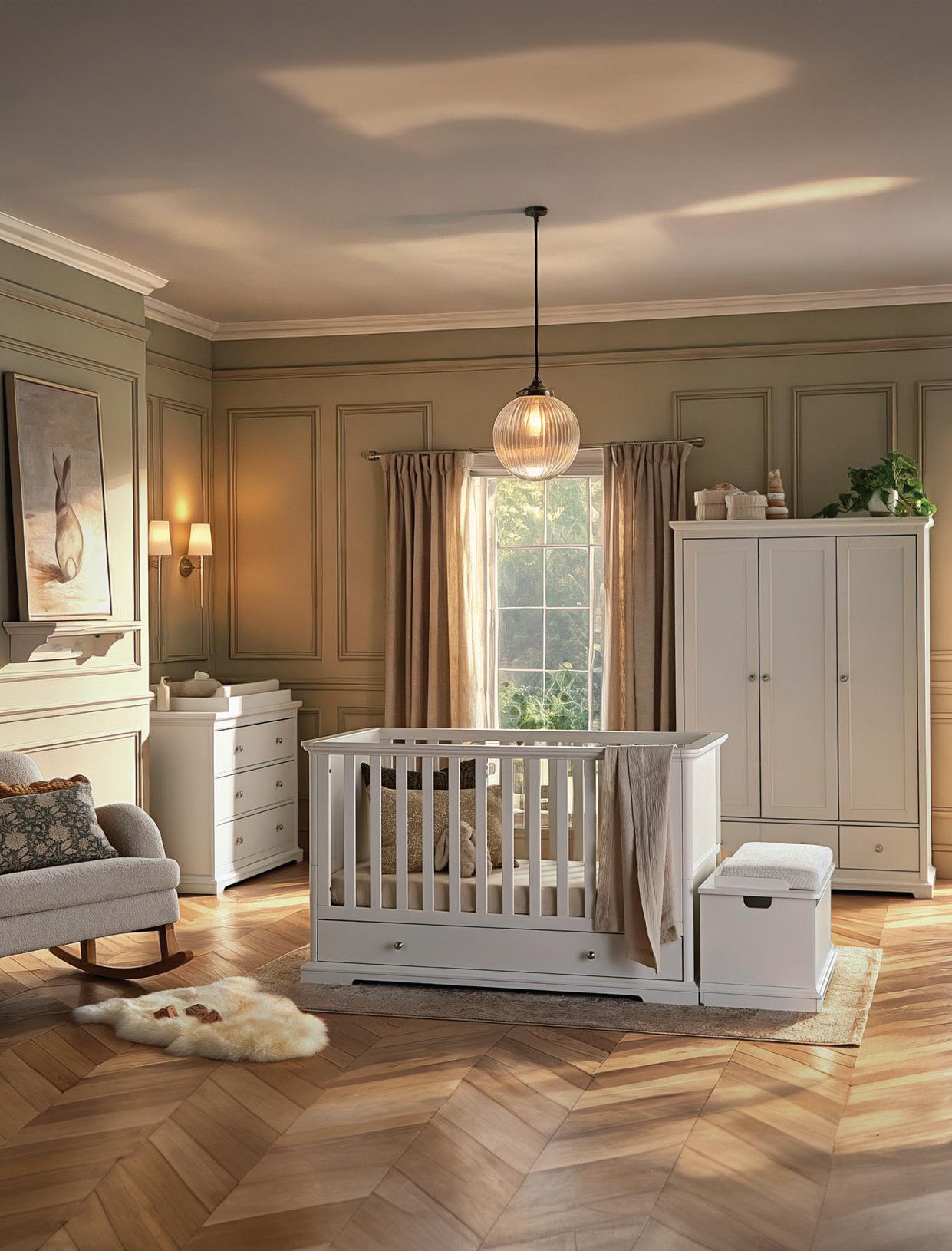 The Clara collection also expands with the new Clara Luxe range, introducing a triple wardrobe, six-drawer dresser/changer, plus toddler and single beds. New for the season, the Burford range launches in oak and oak with white, bringing a fresh, modern feel.