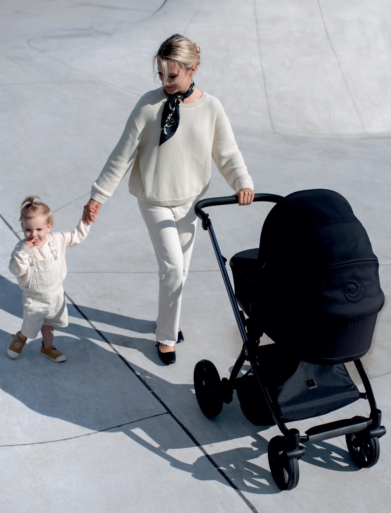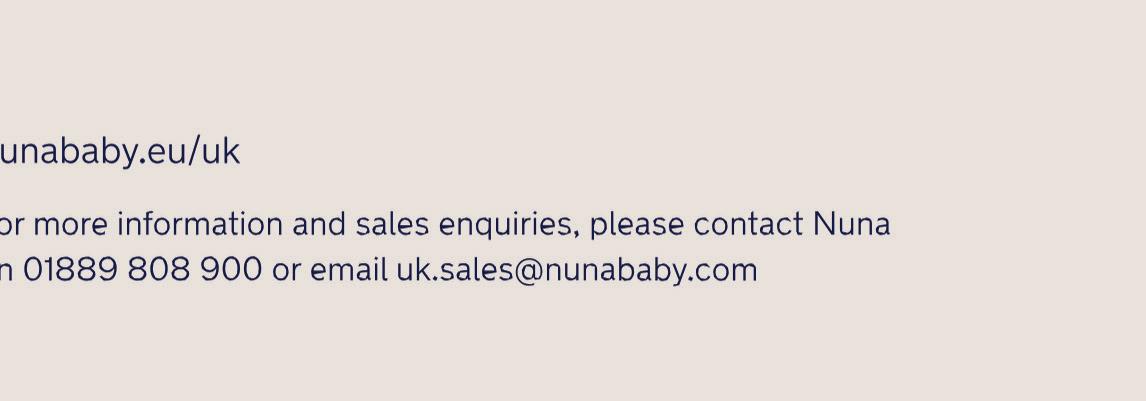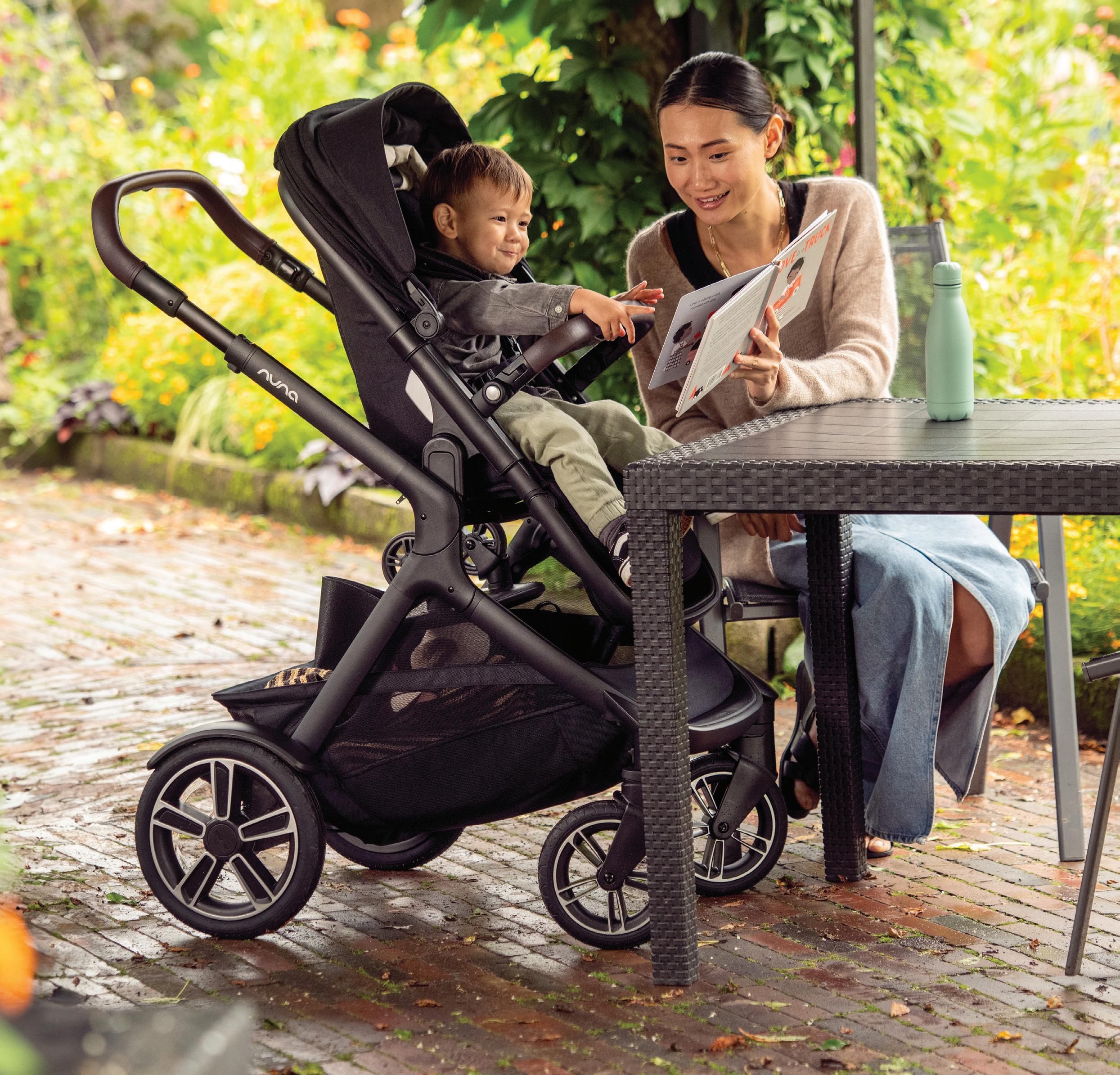 Thoughtfully created for modern parents, it adapts effortlessly as a family grows, offering options for a double stroller or rider board with more than 25 riding modes. Smooth manoeuvrability comes from larger 8.5-inch front wheels, custom dual suspension and a one-touch rear-wheel brake. Baby rides in effortless ease with four recline positions, a one-hand adjustable calf support and a luxurious Merino wool insert. An all-season, water-repellent UPF 50+ Aire Protect canopy provides shade and reassurance, while the adjustable pushbar, easy fold and Magnetech secure snap buckles make everyday outings simpler, safer and more stylish. www.nunababy.eu