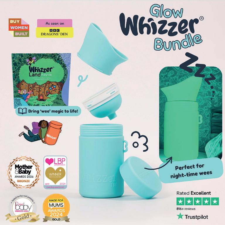 Following the most recent Mother and Baby Award in the Best Potty Training Category, the Whizzer, spotlighted rst by Nursery Today, has cemented its status as the essential, must-pack portable toilet for families onthe-go. This compact, leak-proof solution is now available in an enchanting new bundle: the Glow-in-the-Dark Whizzer paired with the Whizzerland Fairytale book. By bringing the story to life, it transforms both day and night-time training into a magical experience while o ering expert advice to simplify the process. Check the full collection, including the adult range on their website, or enquire directly ahead of their o cial retail launch coming in 2026! www.kiddiwhizz.com