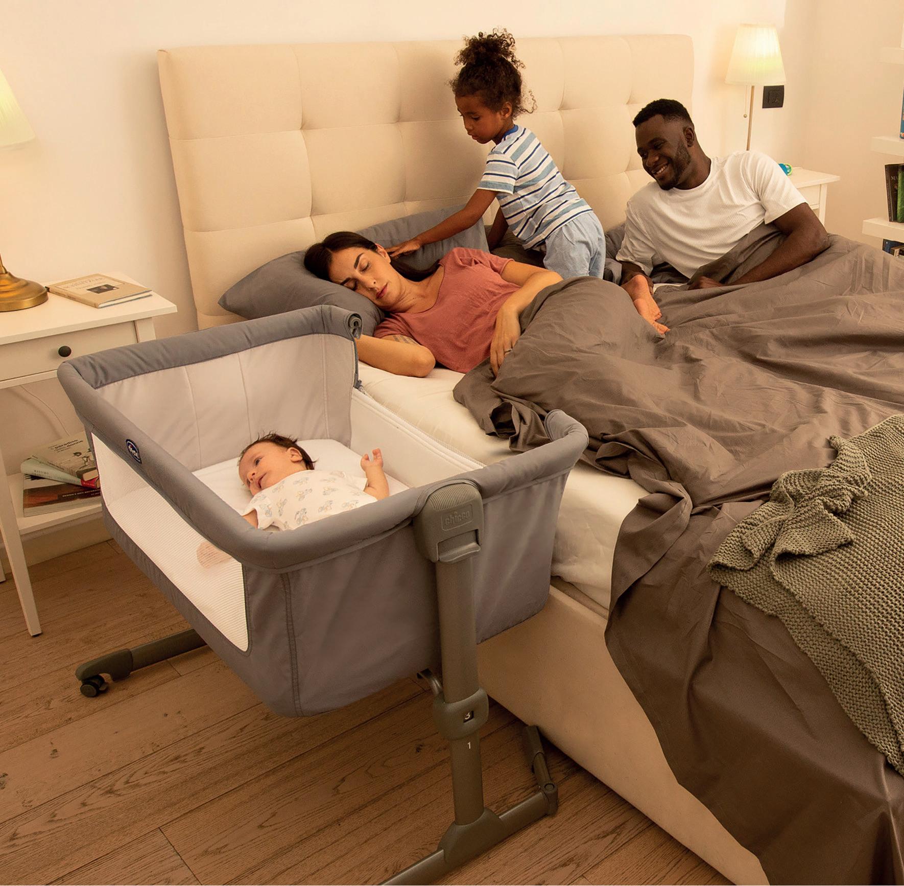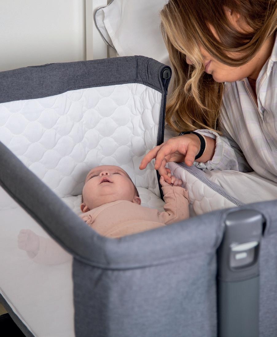 Chicco’s Next2Me bedside cribs are designed with travel and exibility in mind.